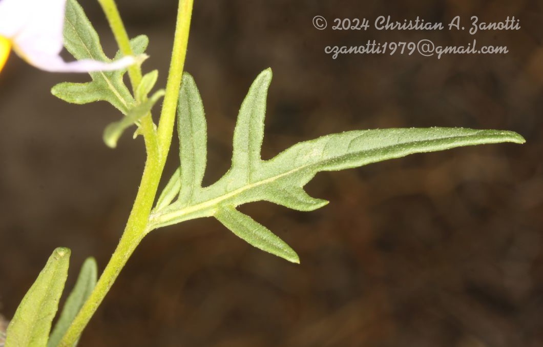 Hierbas sufruticosas a pequeños arbustos, de 0,5-1,5 m de alto, con un xilopodio leñoso; tallos ligeramente angulados cuando jóvenes, apenas a densamente pubescentes, con tricomas simples antrorsos y adpresos al tallo, en ocasiones flocosos (en especímenes provenientes de Famatina, La Rioja) con tricomas de base ensanchada y algo bulbosa; corteza de tallos más viejos grisáceo-amarillenta, glabrescente. Unidades simpodiales 2- plurifoliadas. Hojas simples a variadamente pinnatífidas; pecíolos muy cortos a aparentemente ausentes, no volubles, poco pubescentes, con tricomas adpreso-antrorsos en toda su superficie; láminas más o menos lanceoladas a angostamente elípticas, de 2,5-10 × 1-7 cm, base atenuada, alada a lo largo del tallo, ápice agudo a acuminado, margen entero a 3-5-lobado, inciso hasta el nervio central o muy superficialmente en la base de la hoja, lóbulos de 0,5-3,5 × 0,2-0,7 cm; epifilo glabro o con escasos tricomas simples, adpreso-antrorsos en la base y en los nervios, hipofilo glabro o con pubescencia uniforme, similar a la del epifilo; venas primarias 10-20 pares. Inflorescencia terminal o lateral, en ocasiones opuesta a las hojas, de 1-2,5 cm, simple o furcada, con 4-10 flores en una pseudoumbela, glabra a pubescente, con igual indumento que tallos y hojas; pedúnculo de 1-2,2 cm. Pedicelos filiformes de 0,7-1,2 cm, ca. 0,5 mm de diámetro, nutantes, pubescentes como la inflorescencia, articulados en la base en una muy pequeña manga; cicatrices de los pedicelos muy apretados en el extremo de la inflorescencia sobre una pequeña plataforma; botones elipsoides a fusiformes y elongados; tubo calicinal cónico de 1-1,5 mm, lóbulos largamente triangulares a lanceolados, de 2,5-3 mm, glabros a pubescentes como los tallos; corola estrellada, lobada hasta cerca de la base, de 1-1,6 cm de diámetro, violeta o blanca, a menudo con un ojo de color diferente, lóbulos de 6-8 × 3-4 mm, muy reflexos en la antesis, densa y uniformemente pubescentes en la superficie abaxial, con tricomas simples diminutos, glabros adaxialmente; filamentos libres de 0,5-1 mm, con pubescencia densa de tricomas enredados en la superficie adaxial, anteras de (3-)5-5,5 × ca. 1 mm; estilo de 9-11 mm, glabro o pubescente, con tricomas simples débiles en los 2/3 basales, estigma capitado. Baya púrpura o purpúreo-rojiza cuando madura, de 5-7 mm de diámetro, pericarpo delgado, algo brillante, glabro, esclerosomas presentes; pedicelos fructíferos de 1-1,5 × ca. 1 mm, no leñosos, curvados hacia un lado y péndulos; semillas ca. 20 por baya, ca. 1,5 × 1,5 mm, castañoamarillentas, testa con células rectangulares.