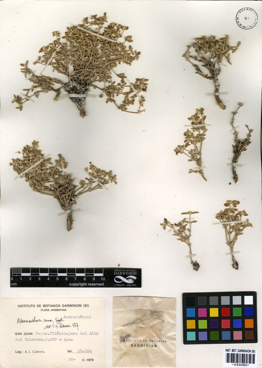 Sufrútices enanos, densamente ramificados, con algunas ramas erectas y otras tendidas; tallos jóvenes canescentes, a la madurez glabrescentes, pelos de 0,6-1,2 mm de largo. Hojas subsésiles, láminas elípticas u estrechamente obovadas, de 0,5-1,6 × 0,15-0,6 cm, agudas, cuneadas, enteras, mucronadas, canescentes en ambas caras. Inflorescencias axilares, solitarias o en fascículos, espiciformes, globosas, de 4-5 mm de diámetro, sésiles, ca. 10-floras; bráctea anchamente ovada a orbicular, de 2 × 1,2-2 mm; bractéolas ovadas, de 1,2-2,5 × 1 mm; tanto la bráctea como las bractéolas agudas, mucronadas, escarioso-hialinas, denticuladas, con pocos pelos, de color blanco-parduzco. Flores con 5 sépalos de color pardo claro, oblongos o estrechamente elípticos, de 2,8-4 × 0,9-1,5 mm, algo desiguales, agudos, con o sin breve mucrón, escariosos en el centro, hialinos en el margen, enteros o denticulados en el ápice, los 3 externos 3-nervios, con nervios marcados, los 2 interiores 1-nervados, algo más estrechos y aquillados, todos pubescentes, de color pardo; estambres 5, pseudoestaminodios laciniados, no alcanzando el ápice de las anteras, anteras de 1-1,1 mm de largo; ovario de 0,3-0,5 × 0,5 mm, estilo de 0,2 mm de largo, estigma capitado. Frutos obovoides, truncados, de 1,2 mm de largo. Semillas de 1 mm de diámetro, de color castaño-claro.