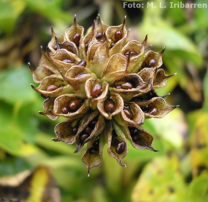 Plantas hasta de 30 cm de alto. Hojas con pecíolos de 7-30 cm de largo; vainas amplexicaules muy desarrolladas, más o menos escariosas, nervaduras centrales notables que se continúan en el pecíolo; lámina ovada a subtriangular, de 5-62 × 7-55 mm, sagitada, borde irregularmente crenado, ápice obtuso o retuso, a menudo mucronado, nervaduras notables en la cara abaxial; apéndices foliares oblicuos, semiovados o semioblongos, tan largos como la lámina, de borde crenado o subdentado. Flores subsésiles o con pedúnculos hasta de 15 mm de largo en la antesis y acrescentes en la fructificación, llegando hasta 10 cm de largo; sépalos petaloideos ovados u oblongos, de 5-15,5 × 2,5-8 mm, obtusos o retusos, desiguales, persistentes; estambres 35-75, anteras ovoides, gruesas, fi lamentos aplanados, 3-nervados; carpelos (30-)50-85, ovoides, asimétricos, atenuados en el estilo. Fruto folículos 50-85 de contorno suboblongo, asimétricos, con rostro algo curvo.