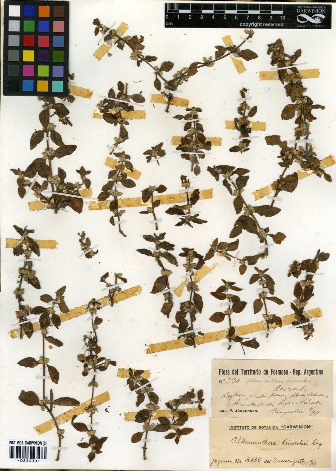 Hierbas anuales, con tallos rastreros radicantes, decumbentes, ascendentes, de 10-40 cm de largo y 10-15 cm de alto, pubescentes. Hojas con pecíolos de 2-7 mm de largo; láminas ovadas o elípticas, de 1-3 × 0,4-1,5 cm, obtusas o agudas, atenuadas, enteras, a veces onduladas, glabrescentes en la cara adaxial, laxamente pilosas en la cara abaxial, con pelos adpresos. Inflorescencias axilares, solitarias o en fascículos, espiciformes, ovoides o cilíndricas, de 0,4-1,2 × 0,3-0,5 cm, sésiles; brácteas y bractéolas ovadas, de 0,7-1 × 0,3-0,4 mm, las brácteas algo menores que las bractéolas, agudas, acuminadas o cuspidadas, mucronadas, escariosas, glabras, con el nervio medio poco marcado, traslúcidas. Flores con 4 sépalos subiguales, oblongos u oblongo-elípticos, de 1,3-1,5 × 0,3-0,5 mm, obtusos, brevemente mucronados, escariosos, enteros, glabros con algunos pelos en la base, 1-nervados, de color blanco o verdoso; estambres 4, pseudoestaminodios apenas más cortos que los filamentos, aleznados, apenas dentados, anteras ovadas, de 0,1-0,2 mm de largo; ovario brevemente estipitado, elíptico, obovoide, de 0,5-0,7 mm de largo, estilo de 0,2-0,3 mm de largo, estigma capitado. Frutos subglobosos ovoides u obovoides, de 1 × 0,5-0,7 mm, membranáceos. Semillas lenticulares, de 0,5-0,7 mm de diámetro, de color castaño-oscuro, brillantes.