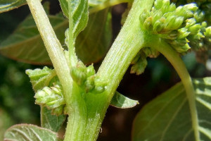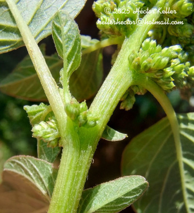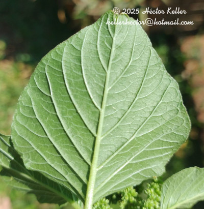 Hierbas anuales o perennes de corta vida; tallos principales usualmente erectos, decumbentes o postrados, de 15-60 cm de alto, simples o ramificados en la base, glabros o algo pubescentes, en particular cerca de la inflorescencia. Hojas con pecíolos hasta de 9 cm de largo, glabras o pubescentes sobre la vena media de la cara abaxial; láminas ovadas, ovado-elípticas o rómbicas, no onduladas, de 2-12 × 1,5-6 cm, ampliamente cuneadas o raramente redondeadas en la base, obtusas o redondeadas en el ápice o someramente emarginadas, mucronadas. Inflorescencias terminales y axilares, las primeras delgadas, generalmente formando una espiga simple larga y delgada, de color verde, de 2-16 × 0,4-0,8 cm, sin hojas en la porción distal; las axilares en glomérulos hasta de 6 mm de diámetro; brácteas y bractéolas ovado-deltoides, de 0,4-1 mm de largo, más cortas que los sépalos, membranáceas, con la vena media de color verde. Flores de ambos sexos sobre una misma inflorescencia. Flores estaminadas con 3 sépalos ampliamente elípticos, de 8-12 mm de largo, estambres 3. Flores pistiladas con 3 sépalos oblongos o angostamente espatulados, de 0,8-1,6 mm de largo, con la vena media gruesa y de color verde en la mitad superior, cortamente mucronados o sin mucrón; estigmas 2-3, de 0,25-0,4 mm de largo. Frutos indehiscentes, casi iguales o apenas más largos que los sépalos, muy rugosos en toda su superficie. Semillas de color castaño oscuro a negro, de 1,1-1,3 mm de diámetro, algo brillantes, reticuladas, finamente verrugosas.