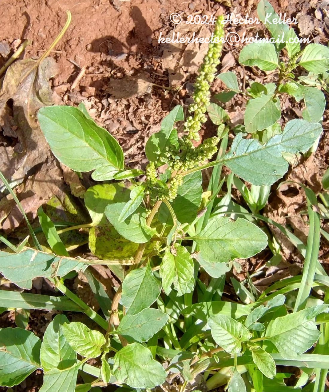 Observaciones: Nombres vulgares y usos. «Bledillo», «bledo», «caá-rurú», «caá-rurú macho», «chaclión», «chaquillón», «karurú», «quinoa rosada», «yerba del sapo». Las hojas de esta especie son consumidas frecuentemente como hortaliza y a veces empleadas como medicinales.