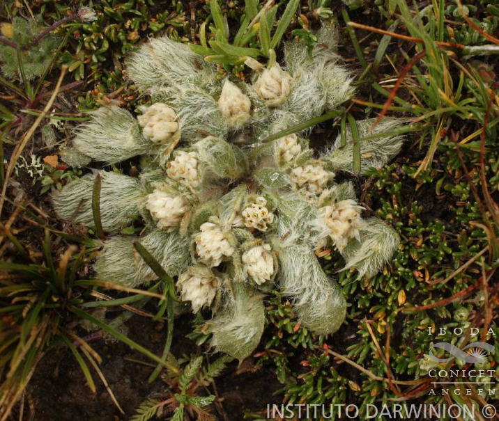 Hierbas perennes, pubescentes; raíz principal subterránea leñosa, vertical, de gran largo y engrosada; tallo principal reducido a un braquiblasto, de mayor grosor que la raíz. Hojas rosuladas simples, lanceoladas a espatuladas, de 1-5,5 × 0,5-2 cm, algo pilosas en la haz y glabras en el envés. Tallos floríferos escaposos (=pedúnculo de la inflorescencia), anuales, hasta de 10 cm de largo; en ocasiones hay tallos floriferos con 1 o 2 nudos de hojas opuestas, simples, ovadas a ovado-lanceoladas, lanosas en la haz y glabras en el envés, lámina de 2 × 0,8 cm; pecíolo de 0,5-1,5 cm de largo. Inflorescencia formada por espigas globosas terminales de 0,5-4 cm de diámetro, pedúnculos de 2 cm de largo, con 4-6 brácteas involucrales foliáceas, lanosas en la haz; bráctea floral ovada, glabra, de 5 mm de largo; bractéolas ovado-lanceoladas, agudas, ecrestadas, glabras, de 6 mm de largo. Flores con sépalos subiguales, blancos, amarillentos o levemente rosados, 1-nervados, espatulados y escariosos en la base, a veces endurecidos a la madurez, de 6 mm de largo. Tubo estaminal ca. 5 mm de largo, parte libre de los filamentos ocasionalmente formando lóbulos laterales; anteras linear-oblongas, de 1,5 mm de largo. Ovario ovoide, de 1,5 mm de largo; estilo de 1 mm de largo y estigma bífido de 1,5 mm de largo. Fruto utriculo, con pericarpo persistente escarioso. Var. meyeniana.- Tallos floríferos escaposos, sin otras hojas que las brácteas foliáceas del involucro; perianto usualmente glabro, aunque algunas veces los sépalos interiores pueden ser pilosos.