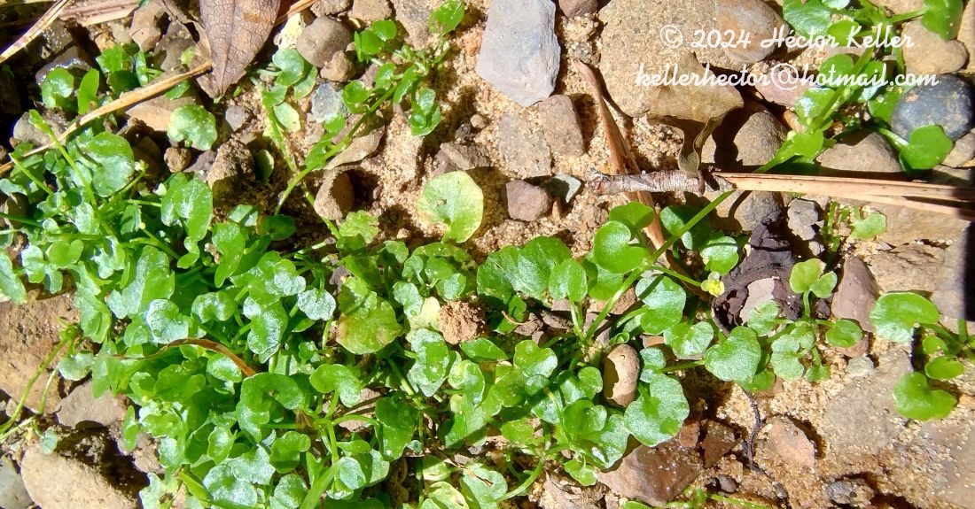 Hierbas estoloníferas, semisumergidas, glabras; tallos delgados hasta de 50 cm de alto, radicantes. Hojas con pecíolos hasta de 5 cm de largo; vaina estipular con 2 aurículas agudas, pequeñas; lámina entera, ovada a suborbicular, raramente reniforme, de 5-18 × 5-25 mm, base cordada o truncada, obtusa o subaguda, margen crenado. Flores solitarias, pedunculadas, opuestas a las hojas; brácteas ovadas o sublineares, obtusas o 2-auriculadas, bordes escariosos; sépalos 3-4, obovados, de 1,5-2,3 × 1-1,3 mm , verdosos o blanquecinos, glabros; pétalos 3-4, obovado-elípticos a oblongo-espatulados, de 1-2 × 0,5-1,3 mm, amarillentos o blanquecinos, glabros; escama nectarífera cerca de la base; estambres (4-)6-9, fi lamentos algo curvos; carpelos 13-30, semiovoideos, comprimidos, asimétricos, atenuados en estilo curvo o en espiral; receptáculo esférico, casi nulo. Frutos aquenios ovoides, de 0,7-1,4 mm de diámetro, asimétricos, levemente aristados, cortamente apiculados y finamente foveolados.
