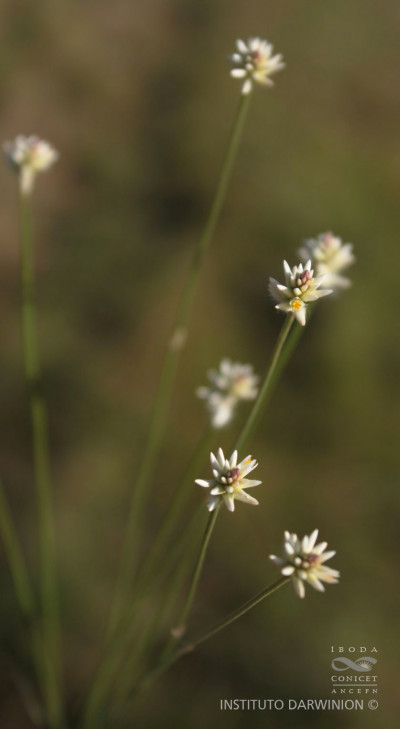 Hierbas perennes, erguidas, de 30-70 cm de largo; raíz tuberosa; tallo no ramificado, levemente pubescente, estriado. Hojas sésiles o con pecíolos de 0,5-1 cm de largo; láminas ovadas o espatuladas, de 3,5-6 × 0,5-2 cm, agudas u obtusas, atenuadas en la base, enteras, ambas caras pubescentes. Inflorescencias en pseudoespigas sobre pedúnculos pubescentes de 6-10 cm de largo, subglobosas, de 0,5-1,5 cm de diámetro, con la edad alargadas, con flores y brácteas caducas a la madurez, dejando ver el raquis velludo, terminales, dispuestas en cimas; brácteas ovadas, bractéolas anchamente ovadas, de 1,8-2 mm de largo, agudas o acuminadas, mucronadas, escariosas, enteras, pubescentes en la base, 1-nervadas. Flores perfectas, con 5 sépalos desiguales, los externos de 4,5-5 mm de largo, los internos oblongos, de 3,5-4 mm de largo, agudos, con largos pelos en la base, de color blanco; estambres con los filamentos soldados en la base hasta aproximadamente 2/5, luego dilatados, fimbriados, 3-lobados, con el lóbulo central anterífero subnulo, los laterales redondeados; ovario obovoide, de 0,5-1 mm de largo, estigma brevemente 2-lobado. Frutos obovoides, de 1,8-2 mm de largo. Semillas ovoides, de 0,8-1 mm de diámetro.