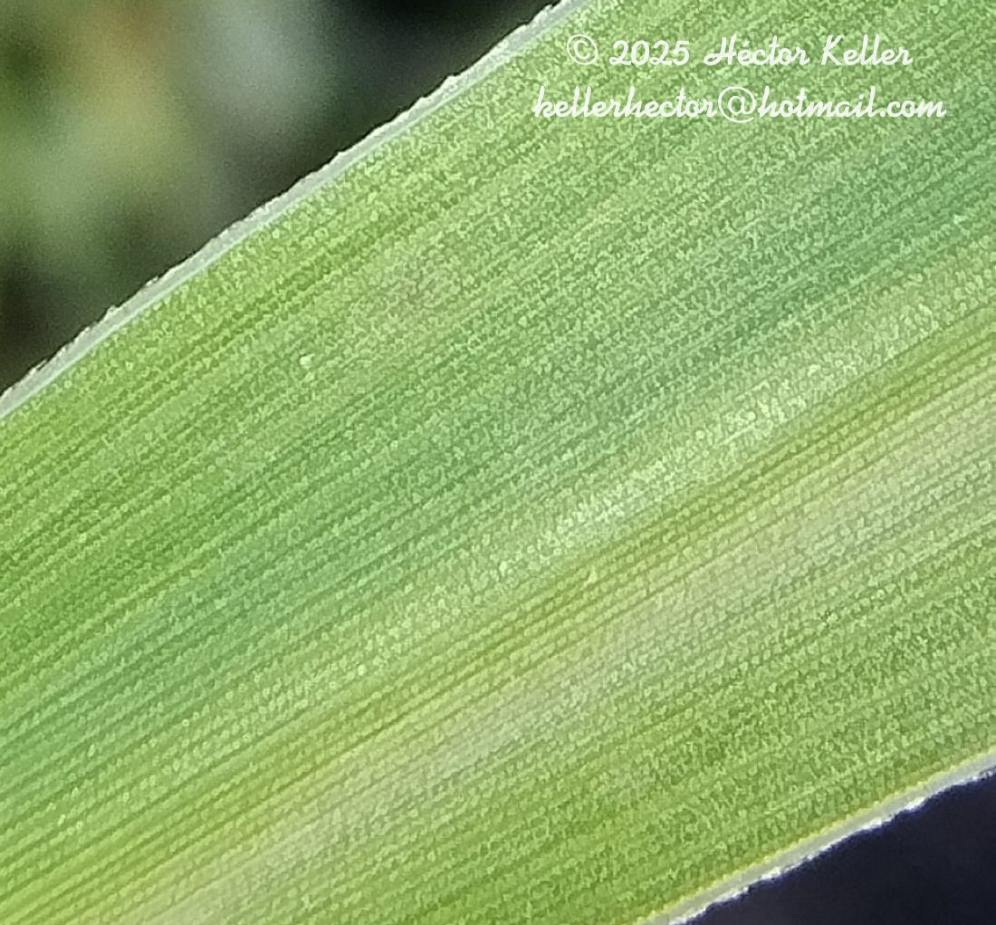 Plantas perennes, cespitosas, provistas de rizomas cortos y gruesos; cañas subleñosas, cilíndricas, de 1-2 m de alto y 3-6 mm de diámetro, macizas o de canal medular reducido, con los entrenudos cilíndricos, glabros, cubiertos por una cerosidad blanquecina, nudos glabros, algo engrosados en la base; vainas abiertas, glabras, con una yema plana en su axila, yema protegida por escamas parduscas, de consistencia papirácea; lígulas pestañosas, formadas por un anillo de pelos cortos de 1-2 mm de largo; láminas lineales, planas cuando frescas, luego caducas, de 10-35 x (0,3-)0,5-1 cm, glabras a escabrosas, de base ancha y ápice acuminado, nervio medio conspicuo. Inflorescencia en panoja espiciforme terminal, solitaria en el eje floral, alargada, densa, exerta, generalmente erguida, castaño-pajiza, de 5-14 x 1-1,8 cm considerando las setas (0,8-1,3 cm de ancho excluyendo las setas); pedúnculos cilíndricos, normalmente rectos, hasta de 9 cm de largo; raquis de la panoja delgado, longitudinalmente estriado, escabroso a brevemente piloso, no dispuesto en zig-zag; involucro no adherente, formado por 16-25 setas lineal-escabrosas, soldadas levemente en la base, con dentículos antrorsos, de largo variado, menores, iguales y mayores que la espiguilla, de 3-12 mm de largo, generalmente con 1-4 setas más larga que las restantes, de 9-13 mm de largo. Espiguillas lanceoladas, solitarias por involucro, de 3,5-6 x 1-1,2 mm, subsésiles, glabras, 2-floras, con el antecio inferior neutro y el superior perfecto, base de la espiguilla pubescente o hirsuta; gluma inferior membranácea, de 1,5-2,5 mm de largo, 1-nervia, de ápice agudo; gluma superior membranácea, de (3-)3,5-5 mm de largo, (5-)7-nervia, de ápice agudo-acuminado; lemma inferior oblonga, de (3,5-)4-5,5 x 1-1,3 mm, 5-7-nervia, de ápice agudo o acuminado; pálea inferior ausente; lemma superior lanceolada, de (3,5-)4-5,5(-6) x 1-1,3 mm, 5-nervia, de ápice agudo o mucronado; pálea superior levemente menor que la lemma; estambres 3, anteras de 2-3,5 mm de largo, de ápice glabro, con los filamentos estaminales rara vez exertos; gineceo con las ramas estigmáticas exertas, de 2-2,5 mm de largo, estilos apenas soldados en la base; cariopsis globosa, ca. 2 mm de largo.