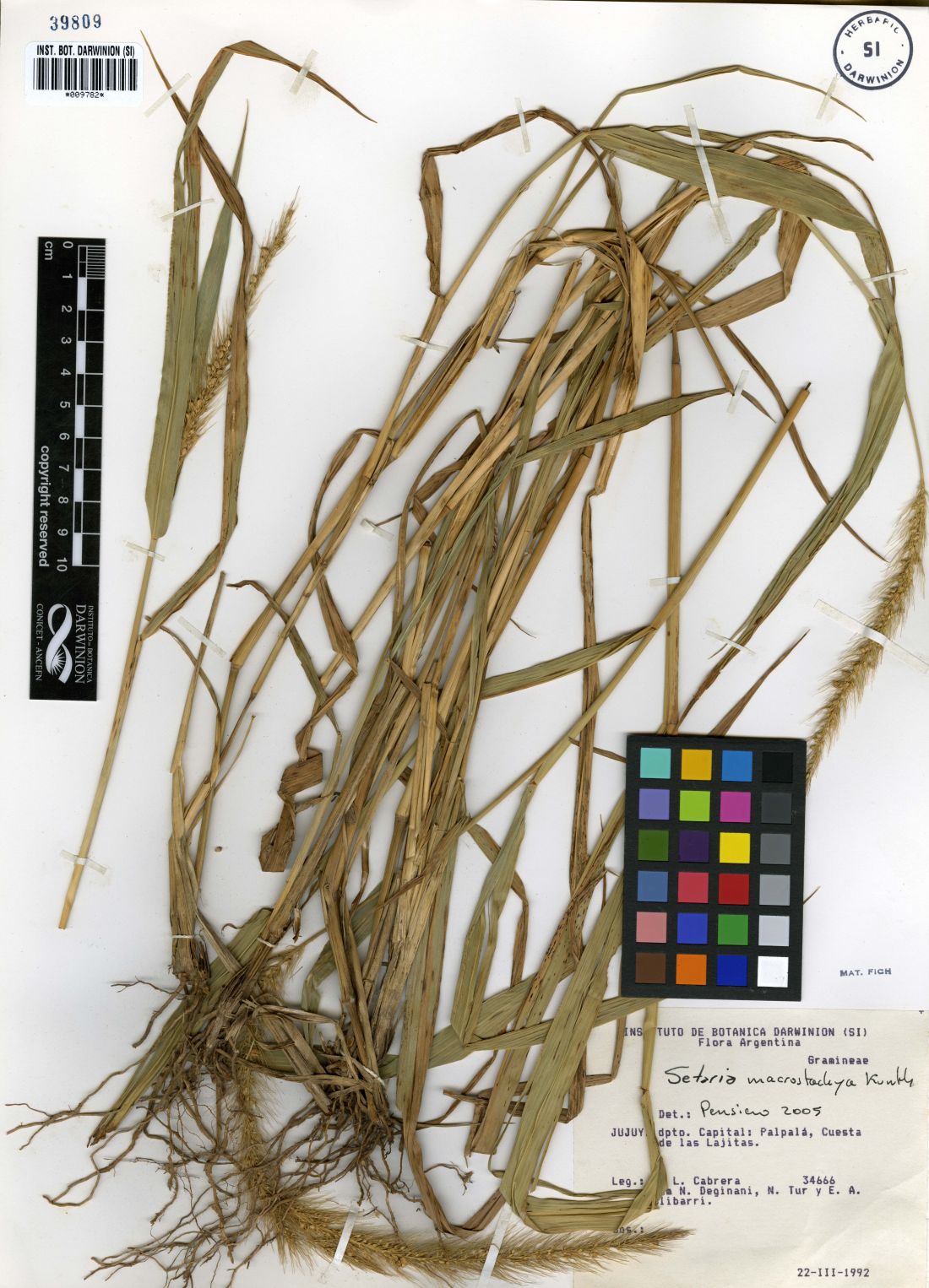 Observaciones: En Argentina Setaria macrostachya ha sido confundida con S. fiebrigii y S. leucopila, de la primera se diferencia por poseer el raquis de la inflorescencia hirsuto y las espiguillas de mayor tamaño, y de la segunda por presentar la lemma del antecio superior rugosa, con surcos conspicuos y la gluma inferior glabra.