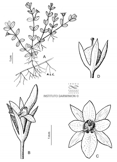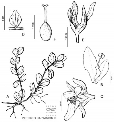 Hierbas anuales, rastreras; tallos filiformes, glabros. Hojas sésiles, orbiculares o anchamente elípticas, de 2-7 × 1,5-3 mm, base subconnada, 3-5 nervadas, glabras. Flores solitarias, muy pequeñas, sésiles o con un pedicelo de 3-5(10) mm de largo. Cáliz 4-partido, sépalos de 1,5-3 × 0,4-1 mm. Corola bilabiada de tubo breve, de 1,5-3 mm de largo, internamente pubescente, de color blanco o violáceo. Estambres 2, con apéndices glandulosos a la altura media de los filamentos. Cápsulas ca. 3 mm de largo.