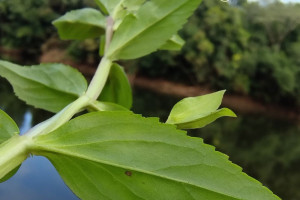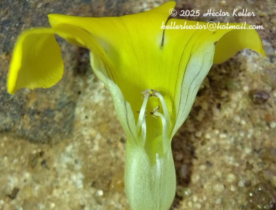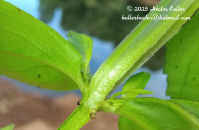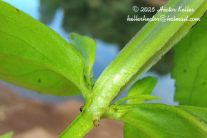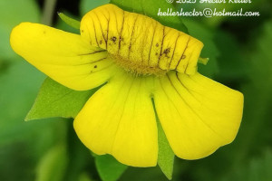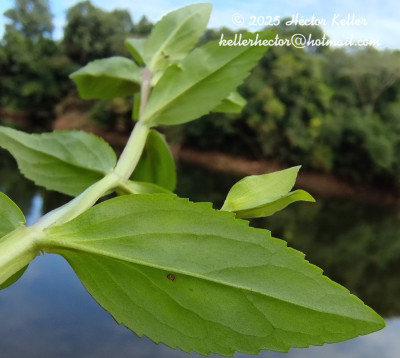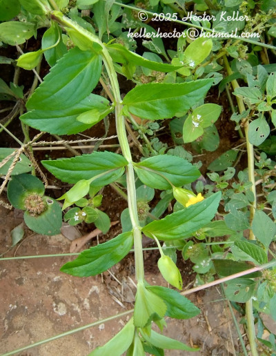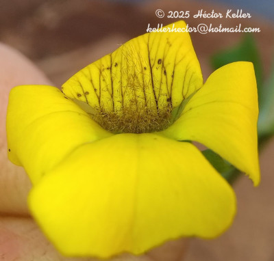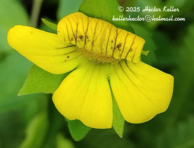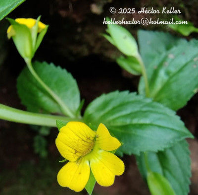 Hierbas de 20-60 cm de alto, glabras. Tallos robustos, de 3- 5 mm de diámetro, cuadrangulares o con costillas, ascendentes o erguidos. Hojas opuestas, subsésiles, láminas ovadas a elípticas, de 20-60 × 7-20 mm, base atenuada, ápice agudo, aserradas, membranáceas. Flores 1 o 2 por nudo; pedicelos de 11- 30 mm de largo; bractéolas lineares, enteras, de 7-11 × 1 mm. Cáliz con sépalo dorsal ovado, de 11-15 × 6,5-8 mm; sépalos ventrales ovados, de 11-13 × 6-7 mm; sépalos internos linear-lanceolados de 10-12 × 1-2 mm, glabros. Corola de 12-15 mm de largo, poco mayor que el cáliz, amarilla, limbo ca. 15 mm de diámetro, labio posterior con pelos claviformes en la cara interna, amarilla, con nervaduras castañas. Estambres laterales con filamentos de 4- 5 mm de largo; estambres ventrales con filamentos de 6-7 mm de largo; anteras elipsoides, de 0,5-0,8 mm de largo. Ovario elipsoide, ca. 3,5 mm de largo; estilo de 1-2 mm de largo. Cápsulas elipsoides, de 5-10 × 5 mm, con cáliz acrescente.