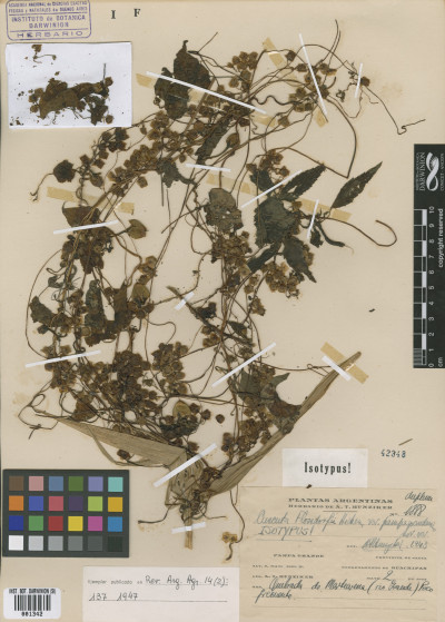 Material Tipo: Argentina. Salta. Dpto. Guachipas. Pampa Grande. Quebrada de Martiarena (rio Grande), 1600 m, 2 May 1942, A. T. Hunziker 1888 (holotipo, CORD 00003911, CORD 00003912; isotipos, GH 00054353, SI 001342, US 00603945).