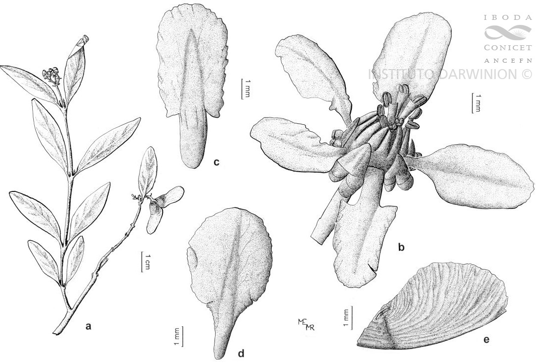 a.BA Nº332351, b-d.De material fresco, sin ej de herbario, e.Burkart, A. 962a.