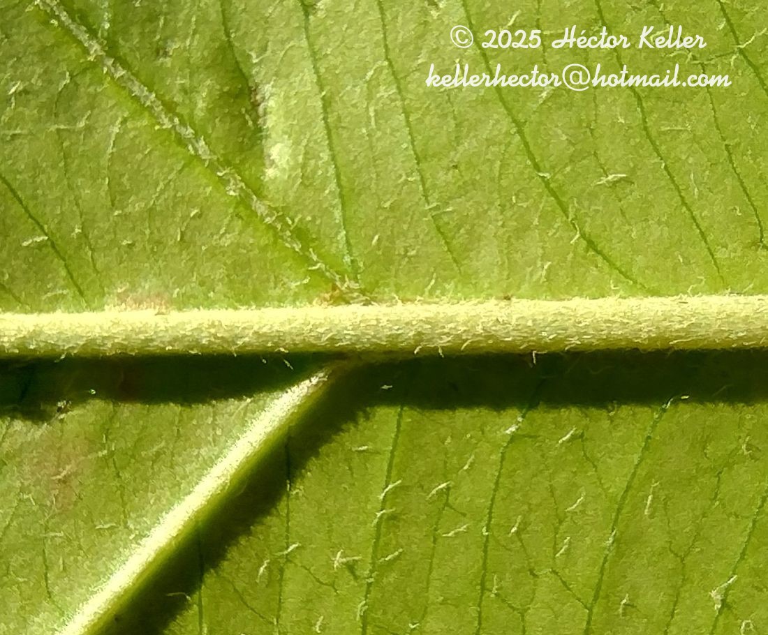 Lianas seríceas a glabrescentes, con entrenudos de 4-6 cm de largo. Hojas con estípulas lineares, recurvadas, de 1-3 mm de largo; pecíolos de 7-10 mm de largo, pubescentes, generalmente con 2 glándulas en el ápice; láminas elípticas, de 8-10 × 2,5-4 cm, de base aguda, ápice agudo o acuminado, glabrescentes en ambas caras, con venas secundarias paralelas y prominentes, generalmente eglandulares. Inflorescencias terminales y axilares, simples o compuestas, en panículas compactas de (1-)3 seudoumbelas 4-floras; brácteas de 0,9-1,2 mm de largo, habitualmente carnosas; pedúnculo floral ausente; bractéolas de 0,9-1,2 mm de largo, adpresas, seríceas; pedicelos de 10-12,5 mm de largo, seríceos; sépalos anchamente ovados, de 3,1-3,5 mm de largo, seríceos en la cara abaxial, glándulas, cuando presentes, ovoides, de 2,3-2,5 mm de largo; pétalos de 8-10 × 6-8 mm, cóncavos, margen fimbriado, con limbo orbicular, el posterior algo menor; androceo con filamentos cilíndricos, apenas soldados en la base, glabros, desiguales, los opositisépalos más largos y el opuesto al pétalo posterior más corto, anteras obovadas, de 1,3- 1,5 mm de largo; ovario de 1-1,2 mm de largo, pubescente, estilos de 4,5-5 mm de largo, terminales, el anterior recto y los posteriores más o menos recurvados, ápice uncinado. Mericarpos samaroides, con alas laterales más o menos ovales, de 1,9-2,3 × 1,2-1,7 cm y ala dorsal trapezoidal, de 0,5-0,6 × 0,3-0,4 cm.