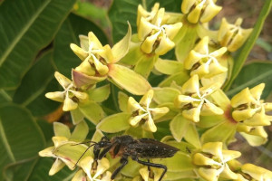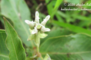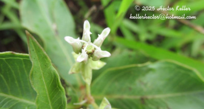 Observaciones: Florece de septiembre a marzo. Se han observado himenópteros (hormigas), dípteros (Tephritidae) y coleópteros (Chauliognathus sp.) visitando las flores. Aquí incluimos a Asclepias aequicornu, A. blanchetii, A. campestris, A. multinervis, A. pallida y A. selloana bajo la sinonimia de A. candida, que cubre toda la variación morfológica tratada por Bollwinkel (1969) en dos variedades de A. mellodora (a saber, var. “bondebenderi” y var. “multinervis”, nombres no válidamente publicados) y un supuesto híbrido entre A. candida y A. mellodora, “Asclepias × aequicornu”.
