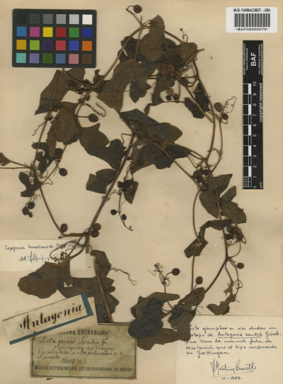 Observaciones: Nombres vulgares. «Papa imperial»,»sandía purgante», «tayuyá». Las plantas florecen a fines de noviembre y principios de diciembre. Las flores son nutantes, con antesis al mediodía, entre las 12h y las 16h. Los pétalos son verdosos con largos pelos blancos y perfume a manzanas verdes. Existe un ejemplar estaminado de Misiones [Montes 551 (SI)], identificado por Martínez Crovetto como Cayaponia bonariensis var. membranacea, in sched. A pesar de que la morfología de las flores y las hojas coincide con Cayaponia bonariensis, los monocasios largamente pedunculados (5-12 cm) y flores amarillentas (según la nota de la etiqueta) no corresponden a esta especie. Por el momento se lo considera un ejemplar de identificación dudosa. Existen colecciones del noroeste de la Argentina, cuya morfología coincide con la de C. bonariensis, razón por la cual se amplía tentativamente la distribución de esta especie, pero estas poblaciones merecen un estudio más detallado