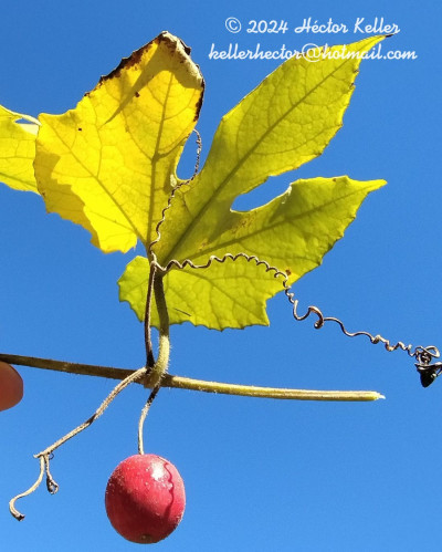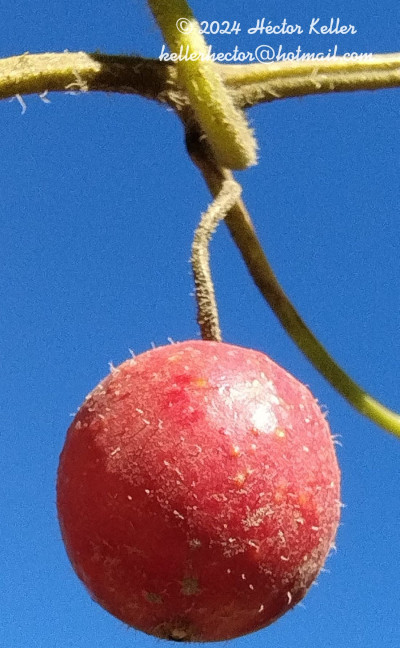 Hemicriptófitos dioicos; tallos plurimetrales. Hojas 3- lobadas, con pecíolos de 3-5 cm de largo y láminas de 12-20 × 10-16 cm. Zarcillos 2-3-fidos. Flores solitarias con pubescencia larga, densa y blanca en pedicelos y envés de los pétalos. Flores estaminadas con hipanto de 20 × 14-18 mm; sépalos lineares, de 15-20 mm; corola verde-amarillenta; filamentos estaminales de 4-5 mm de largo, densamente villosos en su base; sinantéreo de 10-12 mm de largo. Flores carpeladas menores; rudimentos seminales 12; estigma con 3 lóbulos espatulado-peltados cubiertos de emergencias papilosas. Bayas de 25-30 × 20-25 mm, rojas, con pedicelos de 3-7 cm de largo. Semillas de 11-18 × 6 × 2-3 mm.