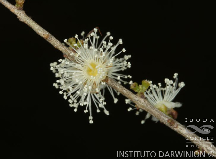 Árbol o arbusto hasta 5 m. Hojas de 1,4-2,4 x 0,4-1 cm, glabras, angostamente elípticas. Inflorescencias 2-3-floras; hipanto glabro; sépalos con corta pilosidad en su cara interna; pétalos glabros; estambres de 3-4 mm; disco estaminal glabro; estilo de 4-7 mm. Fruto de 3-4 mm.