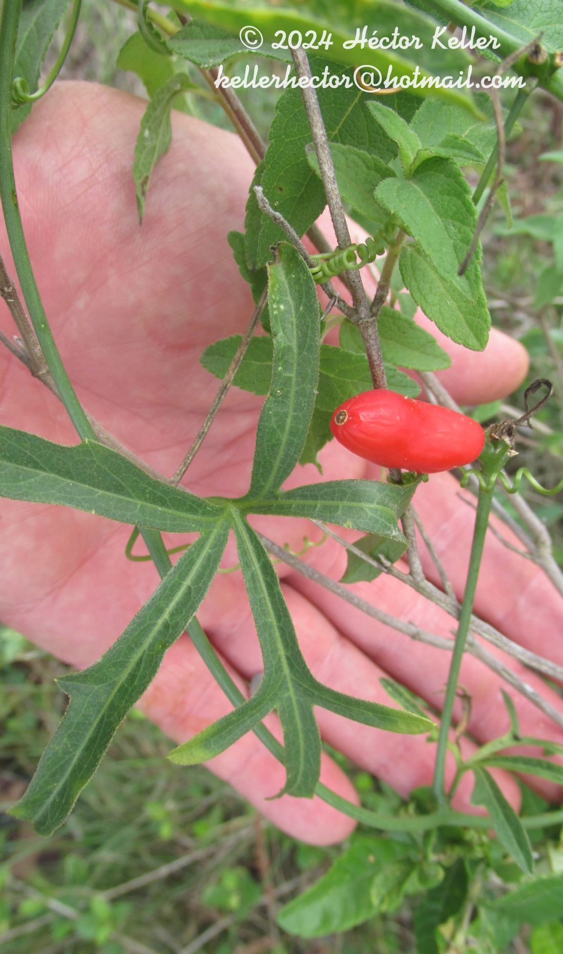 Plantas dioicas. Tallos delgados. Hojas con pecíolos de 1-1,5 cm de largo y láminas de 4-6 × 4-6 cm, 3-5-palmatilobadas, lóbulos enteros a 3-5-partidos o -sectos, anchos a lineares, ápice agudo a obtuso, y margen entero o con pocos dientes pequeños y distantes, a veces tallos floríferos áfilos. Zarcillos simples. Monocasios estaminados 5-50-floros; Pedúnculo de 3-25 cm de largo; pedicelos de 3-6 cm de largo, bracteolados; hipanto de 9- 12 × 0,5 mm en su parte media y 3-4 mm en la boca; sépalos triangulares, de 1,5 × 2 mm o nulos; pétalos de 6-7 × 2 mm, 2-fidos hasta la mitad o hasta la base; anteras de 2 mm de largo; pistilodio de 2 mm de largo o nulo. Monocasios carpelados 3-7-floros; pedúnculos similares a las inflorescencias estaminadas; hipanto de 5 mm de largo; cáliz y corola similar al de las flores estaminadas; ovario de 5-6 mm de largo, 2-carpelar, con pocos rudimentos seminales horizontales; estilo recto, estigma 2-fido, papiloso. Bayas oblongas, rojas, 3-4 seminadas, semillas subesféricas.