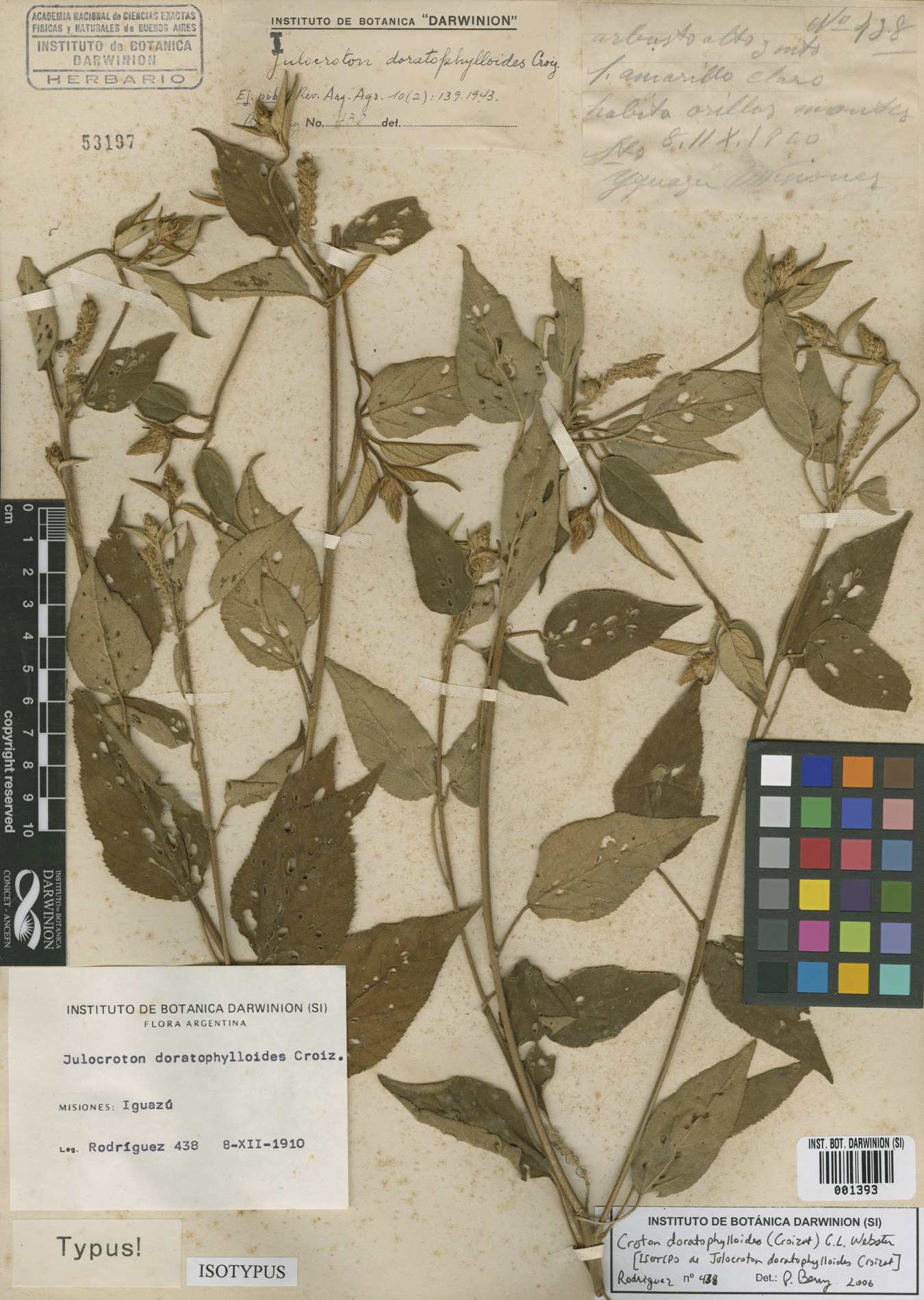 Material Tipo: Basónimo: Julocroton doratophylloides Croizat
