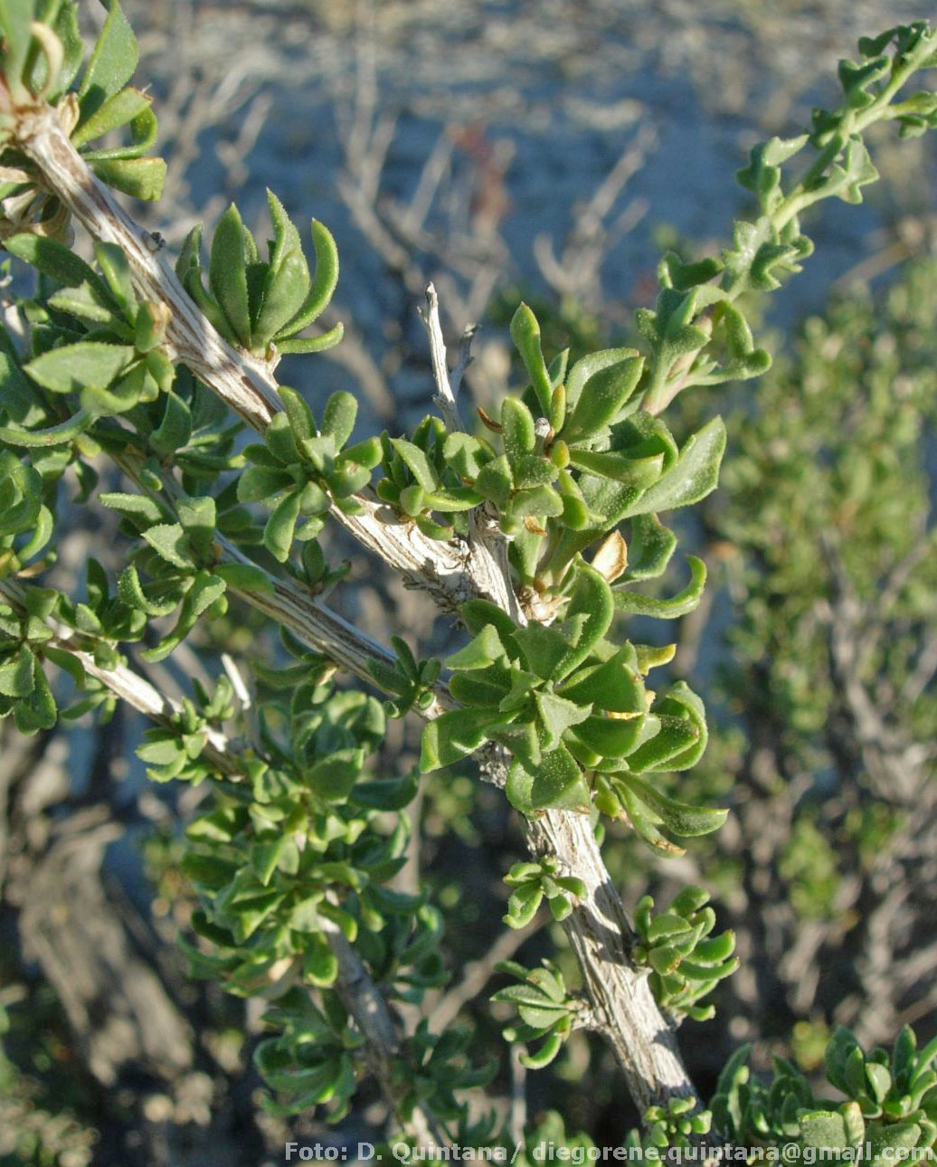 Especie endémica de la estepa patagónica de la Argentina, desde el sur de Mendoza (Cabrera, 1971) hasta Santa Cruz, hacia el sur; citada también para La Pampa (Troiani & Steibel, 1998). Vegeta en lugares muy áridos.