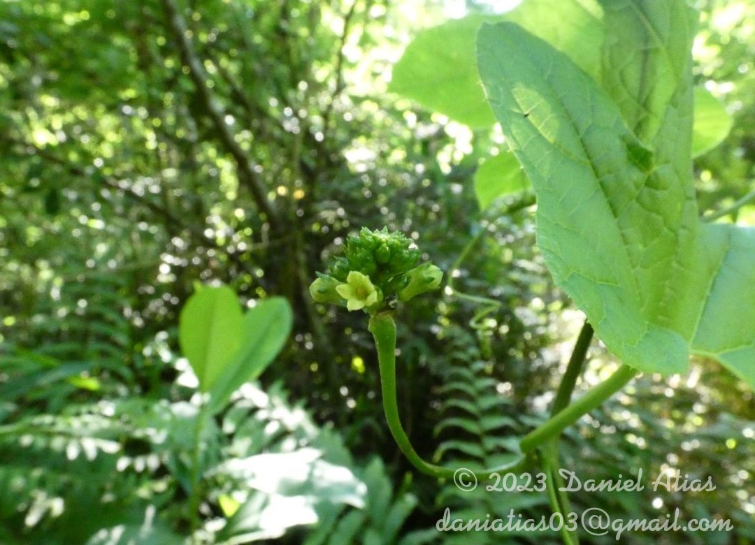 Hemicriptófitos diclinomonoicos o dioicos. Hojas con pecíolos de 6-9 cm de largo; lámina 5-7-pedatipartida, de 14- 18 × 12-17 cm. Monocasios estaminados espiciformes, de 13-20 cm de largo, ebracteados o parcialmente bracteados, con bracteas lineares a lanceoladas, hasta de 10 mm de largo. Flores estaminadas con hipanto de 5-6 × 2-2,5 mm; sépalos de 2-3 × 1 mm; pétalos de 3 × 2 mm, citrinos. Flores carpeladas en fascículos sésiles, 2-4-floros, flores sésiles, subsésiles o con pedicelos de longitud variable en el mismo fascículo; gineceo 3-carpelar; ovario de 6-7 × 3,5-4 mm; estigma con 3 ramas lineares de 2 mm de largo. Bayas ovoideas a subglobosas, de 20 × 15 mm, verdosas. Semillas ovoides, de 5 × 3 mm, marginadas.