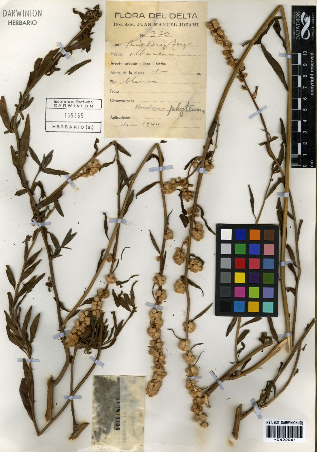 Sufrútices de 1-1,5 m de alto, revestidos por nidos pilosos. Hojas sésiles o brevemente pecioladas, angostamente elípticas a lineares, de 5-10 × 0,5-2 cm, atenuadas en la base, agudas en el ápice, enteras o levemente aserradas en el margen, 3- o penninervadas. Capítulos sésiles, solitarios o en glomérulos, en conjunto reunidos en una espiga foliosa en el extremo de las ramas y de ramitas laterales. Capítulos pistilados con involucro acampanado de 5 × 4 mm; filarios en 3 series, agudos, los exteriores ovados y los interiores angostamente ovados a lineares. Flores 57-92; corolas de 2,1-4,2 mm de largo, de ápice irregularmente denticulado o brevísimamente ligulado. Aquenios de 0,5-1,2 mm de largo, 5-costados, pubérulos en las costillas. Papus 1-seriado, apenas acrescente. Capítulos estaminados con involucro acampanado de 4 × 4 mm; filarios semejantes a los pistilados. Flores ca. 30; corolas ca. 5 mm de largo; estilo con ramas breves y adheridas entre sí. Papus con cerdas no ensanchadas en el ápice.