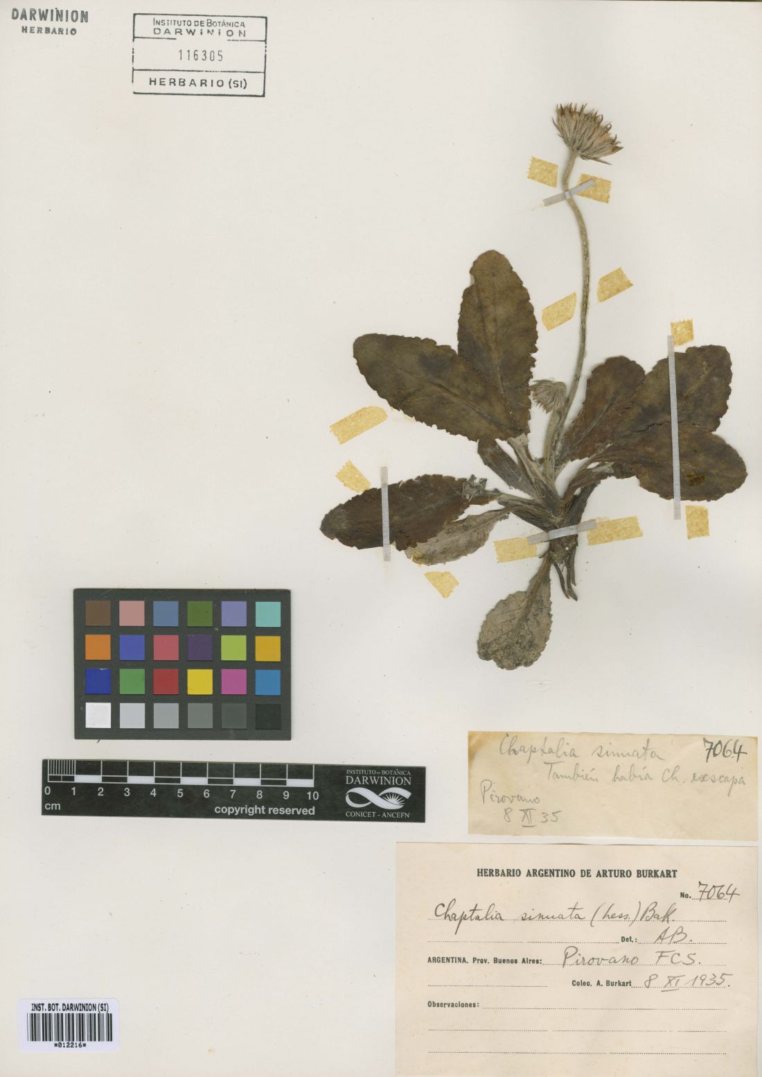 Hierbas perennes, con rizoma breve y raíces adventicias crasas de color rojizo. Hojas en roseta, obovadas o elípticas, 6- 12 × 2,5-5 cm, atenuadas en la base en un corto pseudopecíolo, obtusas o subagudas en el ápice, retrorso-aserradas o ligeramente sinuadas en el margen, discoloras, glabrescentes o lanuginosas, de color verde en la cara superior y blanco-tomentosas en la inferior. Capítulos solitarios, nutantes cuando jóvenes y al fructificar (erguidos en la antesis), en el extremo de un escapo floral de 7-35 cm de largo, tomentoso, con 1-3 brácteas linearsubuladas, a veces ausentes. Involucro acampanado, de 14-25 × 10-15 mm; filarios pluriseriados, tomentosos en el dorso. Flores numerosas, trimorfas, con corolas blancas o rosadas, las del margen 1-seriadas, pistiladas, con corolas subliguladas, ca. 15 mm de largo, las siguientes numerosas, pistiladas, con corolas filiformes, ca. 8 mm de largo y estilo apenas más largo que la corola; las del centro perfectas, con corolas tubuloso-bilabiadas, ca. 11 mm de largo. Aquenios fusiformes, de 13-16 mm de largo, 5- costados, rostro de 9-11 mm de largo, cortamente pubescentes. Papus blanco-sedoso, de 12-15 mm de largo.