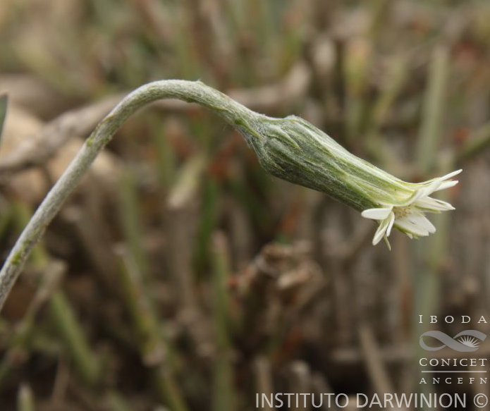 Hierbas perennes, con rizoma breve y raíces adventicias crasas de color rojizo. Hojas en roseta, obovadas o elípticas, 6- 12 × 2,5-5 cm, atenuadas en la base en un corto pseudopecíolo, obtusas o subagudas en el ápice, retrorso-aserradas o ligeramente sinuadas en el margen, discoloras, glabrescentes o lanuginosas, de color verde en la cara superior y blanco-tomentosas en la inferior. Capítulos solitarios, nutantes cuando jóvenes y al fructificar (erguidos en la antesis), en el extremo de un escapo floral de 7-35 cm de largo, tomentoso, con 1-3 brácteas linearsubuladas, a veces ausentes. Involucro acampanado, de 14-25 × 10-15 mm; filarios pluriseriados, tomentosos en el dorso. Flores numerosas, trimorfas, con corolas blancas o rosadas, las del margen 1-seriadas, pistiladas, con corolas subliguladas, ca. 15 mm de largo, las siguientes numerosas, pistiladas, con corolas filiformes, ca. 8 mm de largo y estilo apenas más largo que la corola; las del centro perfectas, con corolas tubuloso-bilabiadas, ca. 11 mm de largo. Aquenios fusiformes, de 13-16 mm de largo, 5- costados, rostro de 9-11 mm de largo, cortamente pubescentes. Papus blanco-sedoso, de 12-15 mm de largo.
