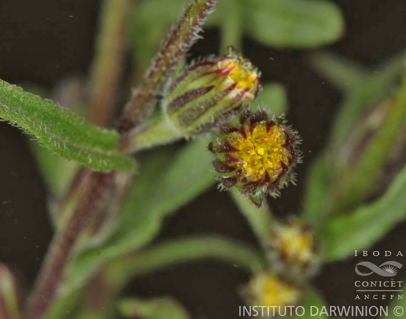 Hierbas anuales, hasta de 60 cm de altos; raíz principal desarrollada; tallos varios, simples o únicos, ramificados en la base, laxamente hojosos, estrigosos. Hojas obovadas o linearovadas, de 10-45 × 1-6 mm, base atenuada y ápice obtuso o subobtuso, margen usualmente entero o apenas lobado en el tercio superior, estrigosas, todas más o menos del mismo tamaño. Capítulos solitarios (raramente 2 ó 3) en las axilas de las hojas superiores, ca. 5 × 0,4-0,5 mm, sésiles o subsésiles, formando en conjunto una pseudospiga. Involucro hemisférico, formado por filarios desiguales dispuestos en 3 series, lineares, de 3-3,6 × 0,5- 0,7 mm, agudos, hirsutos. Flores marginales en 4 series, con corola filiforme, de 2-2,5 mm de largo, de igual longitud o apenas más larga que los filarios, con limbo corto (ca. 0,5 mm), ápice entero; flores del centro pocas, con corola tubuloso-campanulada, de 2,5-2,7 mm de largo. Aquenios de 1-1,2 × 0,3-0,5 mm, laxamente seríceos. Papus de 2-2,4 mm de largo.
