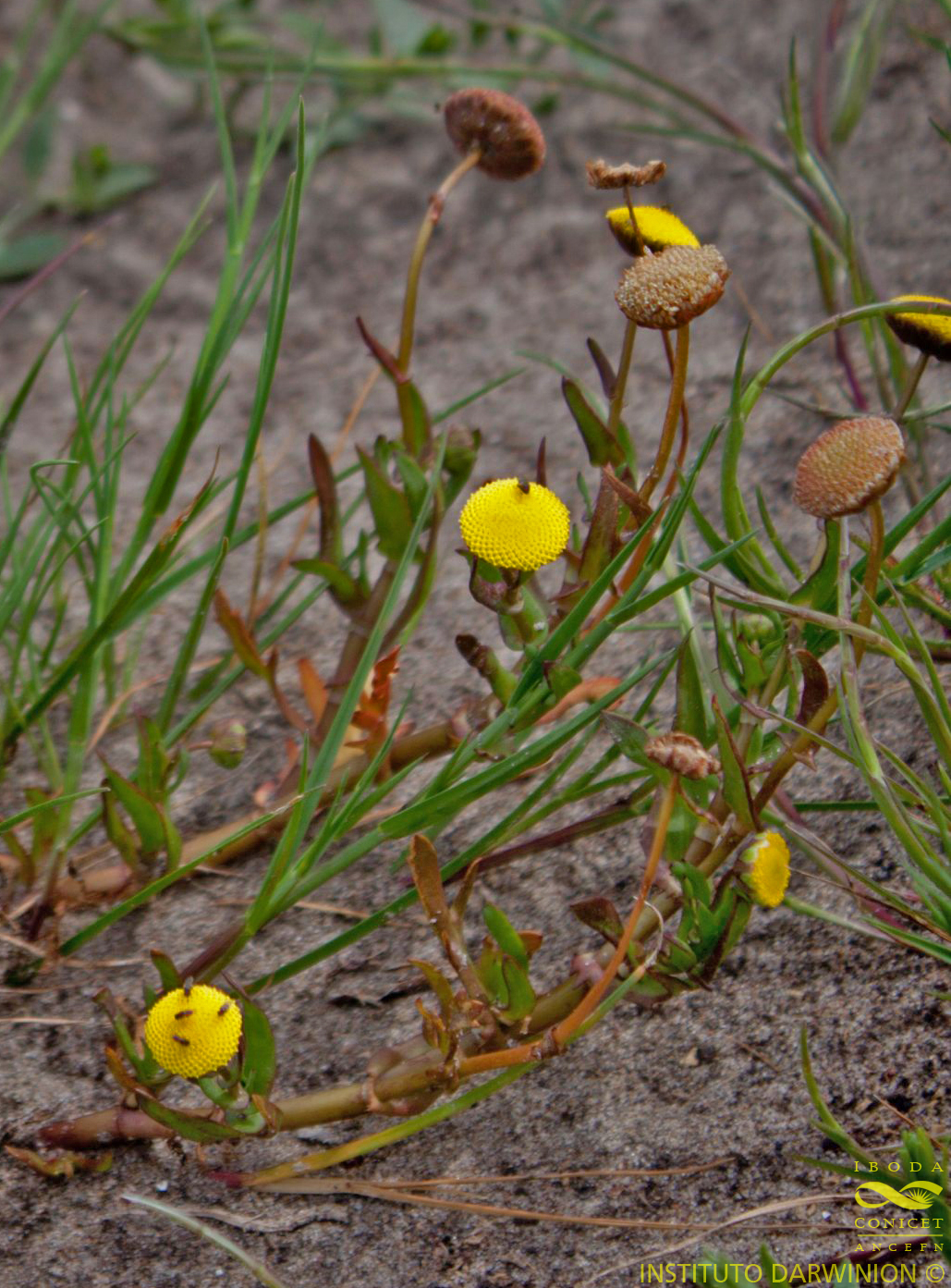 Hierbas perennes, crasiúsculas, glabras, con tallos radicantes, postrados, decumbentes o ascendentes, de 5-15(-25) cm de alto. Hojas sésiles, lanceoladas, lineares u oblongas, de 1-7 × 0,6-1 cm, enteras o profundamente lobadas a pinnati- o bipinnatisectas (raquis generalmente ancho), base envainadora, membranáceas. Capítulos medianos, pedunculados, solitarios en el extremo de las ramitas, subdiscoides. Involucro semiesférico, de 2-5 × 6-9(-12) mm; filarios ca. 2-3-seriados, obtusos, glabros, escariosos. Receptáculo glabro, con pedicelos florales persistentes. Flores dimorfas: las del margen pistiladas, con corola ausente; flores del centro perfectas, corolas con tubo corolino 4-lobulado, de 2,6-3 mm de largo. Estambres 4. Aquenios dimorfos, papilosos en la cara ventral, lisos en el dorso, los del margen 2-alados, de 1,2- 2,2 mm de largo, los del centro con un margen angosto, engrosado, de 0,5-1 mm de ancho.2-alados, y los del disco con un angosto margen engrosado.