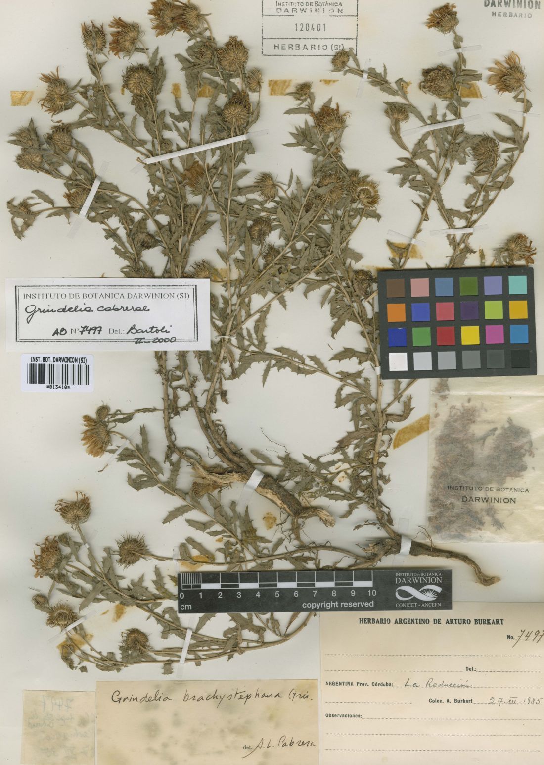 Subarbustos de 10-40 cm de alto. Tallos erguidos, con abundantes tricomas glandulares estipitados. Hojas sésiles, elípticas de 15-30 × 2-6 mm, con la base atenuada en un pseudopecíolo, ápice agudo, margen dentado, con los dientes prolongados en una arista espinulosa curva, con abundantes tricomas glandulares estipitados en ambas caras. Capítulos radiados, de 15-35 mm de diámetro. Involucro hemisférico, de 5- 9 × 10-12 mm, con 6-7 series de filarios subiguales, los externos lineares, de 5-7 × 0,5-0,8 mm, acuminados, con el ápice espinuloso, cartáceos en la porción basal, cubierto por tricomas glandulares estipitados; los internos elípticos, de 7-9 × 1-1,5 mm, acuminados, con tricomas glandulares estipitados en la porción distal. Flores dimorfas, las marginales con corola ligulada, limbo elíptico, 3- dentado, de 9,5-16 × 2,2-3 mm; las del centro con corola tubulosa de 4-5 mm de largo. Aquenios prismáticos, de 3-3,5 mm de largo, sin alas o con 2-4 costillas que se prolongan en la parte superior a modo de corona. Papus formado por 2-4(-5) aristas con una cara aplanada, de 4-5 mm de largo, escasamente ciliadas en los márgenes.