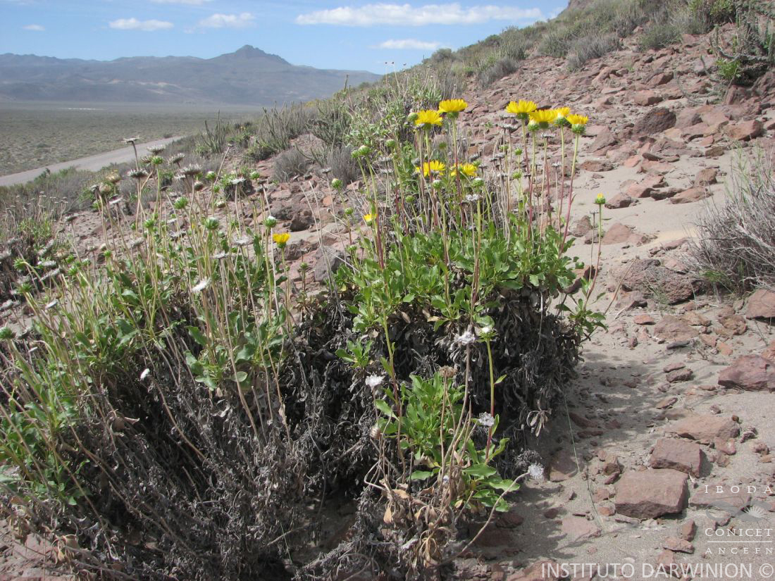Subarbustos hasta de 1 m de alto, muy resinosos. Tallos erectos, hojosos en su parte distal. Hojas sésiles, con la lámina angostándose en un pseudopecíolo, elípticas o angostamente elípticas, de 33-91 × 7-21 mm, ápice obtuso a agudo, margen entero o dentado, cuando dentado los dientes se prolongan en una arista esclerosada, con tricomas glandulares sésiles semihundidos o hundidos en la epidermis. Capítulos radiados, de 30-65 mm de diámetro. Involucro hemisférico, de 10-18 × 11-20 mm, con 7-10 series de filarios desiguales, los externos angostamente triangulares, de 4-17 × 1-4 mm, acuminados, con el ápice a veces reflexo, con tricomas glandulares sésiles en toda su superficie; los internos anchamente elípticos, de 6-14 × 1,5-3 mm, acuminados, con márgenes membranáceos, con tricomas glandulares sésiles en la porción distal. Flores dimorfas, las marginales con corola ligulada, con limbo elíptico, 3-dentado, de 15-30 × 1,7-5,6 mm; las del centro con corola tubulosa de 6-10 mm de largo. Aquenios ovados, comprimidos, alados, de 5,5-6 mm de largo. Papus formado por 6-13 aristas de 6-13 mm de largo, paleáceas, apenas ciliadas en el margen.