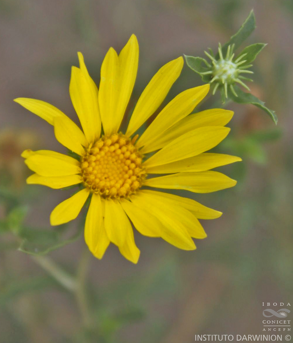 Subarbustos de 30-100 cm de alto. Tallos erectos, muy ramificados, hojosos hasta el ápice, con tricomas glandulares sésiles. Hojas sésiles, linear-elípticas a elípticas, de 25-65 × 5-15 mm, con tricomas glandulares sésiles en ambas caras y tricomas cortos, rígidos y arqueados, en los márgenes. Capítulos radiados o discoides, de 25-35 mm de diámetro. Involucro hemisférico, de 7-15 × 25-30 mm, con 7-9 series de filarios subiguales, los externos lineares con la base ensanchada, de 3-10 × 0,3-0,5 mm, acuminados, con tricomas glandulares en toda la superficie; los internos elípticos, de 4-7 × 1-1,5 mm, acuminados, con tricomas glandulares en la porción distal. Flores isomorfas o dimorfas, las marginales, cuando presentes, con corolas liguladas, limbo elíptico, 3-dentado, de 10-18 × 1,5-3,5 mm; las del centro con corola tubulosa de 5 mm de largo. Aquenios prismáticos, de 3,5 mm de largo, con un reborde en el ápice. Papus formado por 3-6 aristas, de 5 mm de largo, ciliadas, con una cara plana.