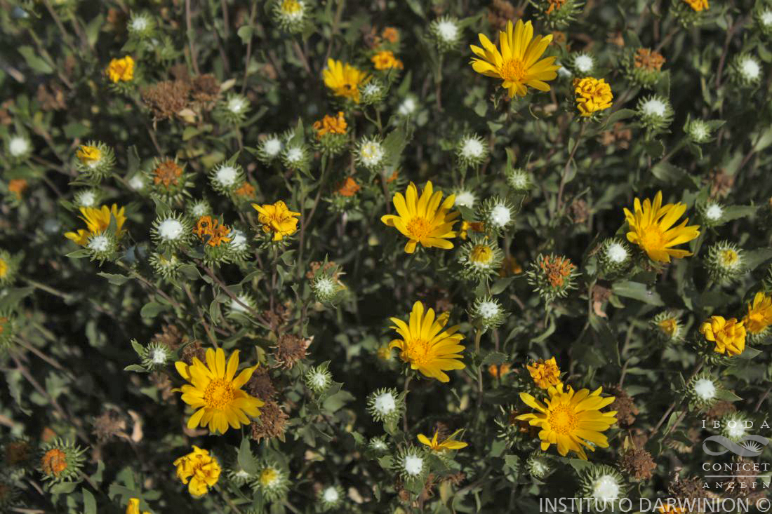 Subarbustos de 30-100 cm de alto. Tallos erectos, muy ramificados, hojosos hasta el ápice, con tricomas glandulares sésiles. Hojas sésiles, linear-elípticas a elípticas, de 25-65 × 5-15 mm, con tricomas glandulares sésiles en ambas caras y tricomas cortos, rígidos y arqueados, en los márgenes. Capítulos radiados o discoides, de 25-35 mm de diámetro. Involucro hemisférico, de 7-15 × 25-30 mm, con 7-9 series de filarios subiguales, los externos lineares con la base ensanchada, de 3-10 × 0,3-0,5 mm, acuminados, con tricomas glandulares en toda la superficie; los internos elípticos, de 4-7 × 1-1,5 mm, acuminados, con tricomas glandulares en la porción distal. Flores isomorfas o dimorfas, las marginales, cuando presentes, con corolas liguladas, limbo elíptico, 3-dentado, de 10-18 × 1,5-3,5 mm; las del centro con corola tubulosa de 5 mm de largo. Aquenios prismáticos, de 3,5 mm de largo, con un reborde en el ápice. Papus formado por 3-6 aristas, de 5 mm de largo, ciliadas, con una cara plana.