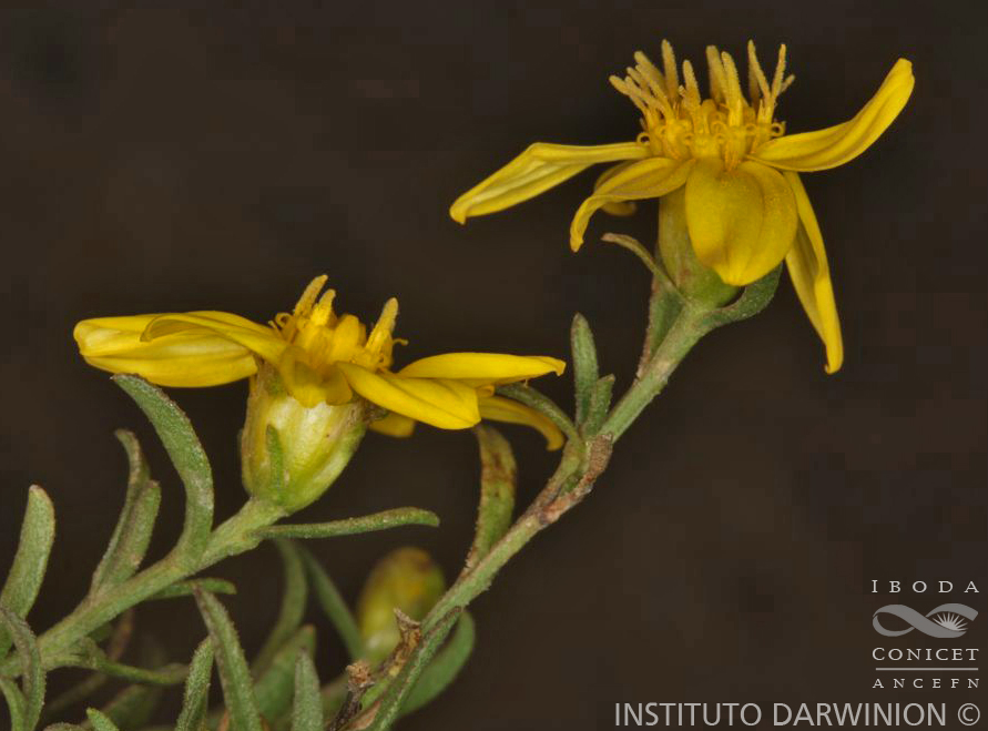 Arbustos rizomatosos, hasta de 40 cm de alto, con tallos ramificados, hojosos, resinosos. Hojas lineares, de 8-35 × 1,5-2 mm, base atenuada, ápice subagudo, margen entero, generalmente con pelitos cortos en el margen; hojas superiores muchas veces escuamiformes. Capítulos solitarios o dispuestos en inflorescencias secundarias de pocos capítulos (4-5), pedunculados, de 6-7 × ca. 4 mm. Involucro acampanado, de 5-6 mm de alto; filarios dispuestos en 2(-3) series, ovados, de 4-4,5 × 0,8-1 mm, ápice subagudo. Flores del margen con corolas amarillas (excepcionalmente blancas), de 6,5-8,7 mm de largo, limbo de 3-7 × 1,5-3 mm; flores del centro con corolas de 3,5-4,3 mm de largo; ramas del estilo oblongas. Aquenios de 1,3-1,6 × 0,5 mm, seríceos. Papus formado pajitas, las de las flores del centro de 1,2-1,5 mm de largo.