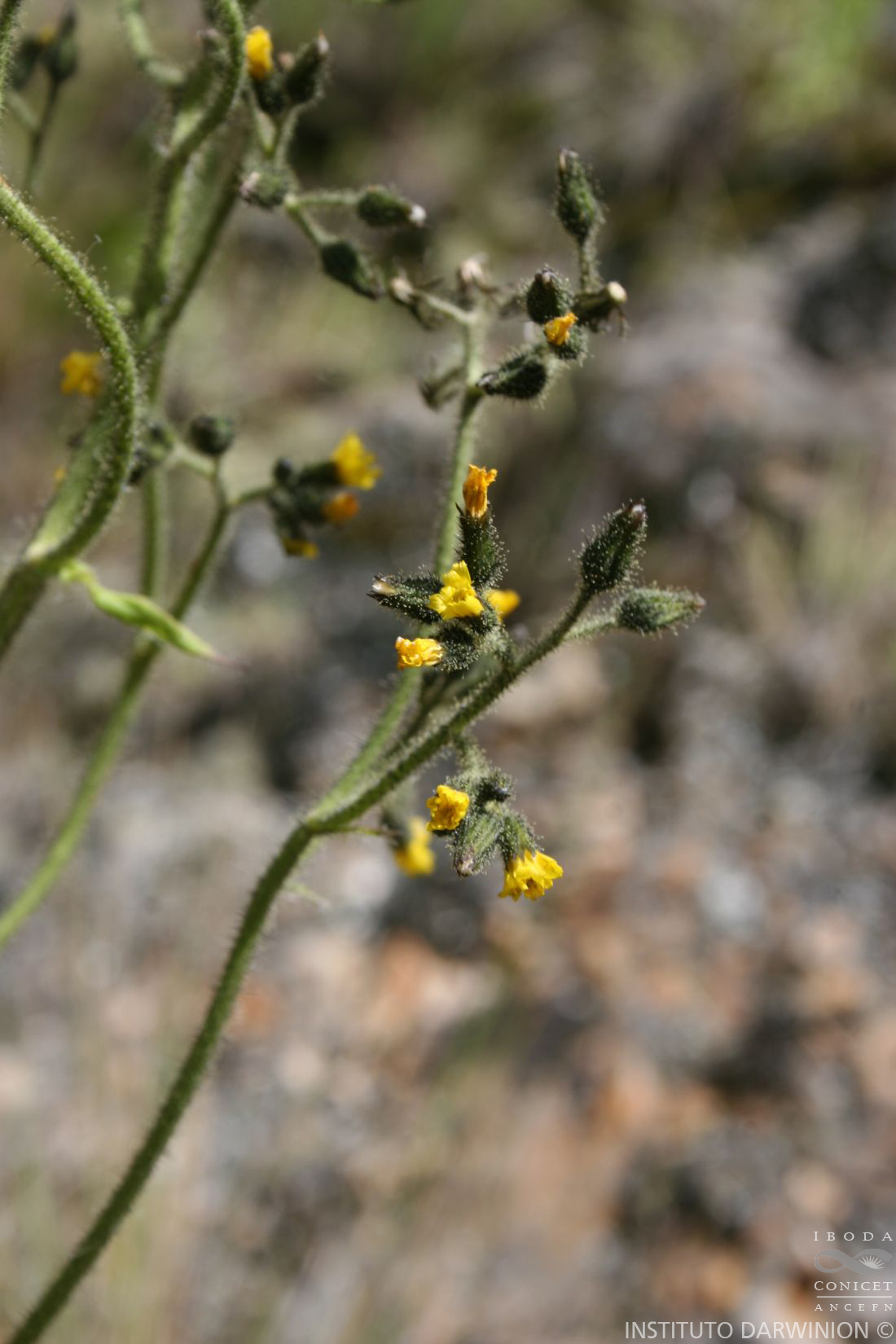 Hierbas perennes, rizomatosas, robustas, de 45-80 cm de alto. Tallos flocosos con abundantes pelos simples en la base y entremezclados con pelos glandulares, en la parte superior. Hojas setosas y microglandulosas en haz y envés, las inferiores lanceolado-oblongas u oblanceoladas, de 12-17 × 3-4(-6) cm, pseudopecioladas, de ápice agudo u obtuso, las superiores ovado-lanceoladas, semiabrazadoras en la base, agudas. Capítulos dispuestos en laxas inflorescencias tirsoideas pluricéfalas; pedúnculo e involucro lanosos, con pelos glandulares de base negra, que se continúan en hileras en el centro de los filarios lineares, agudos. Involucro cilíndricoacampanado, de 7-8(-10) × 5-6 mm. Flores amarillas con lígula corta. Aquenios negros, de 3-4 mm de largo. Papus amarillento, ca. 4 mm de largo.