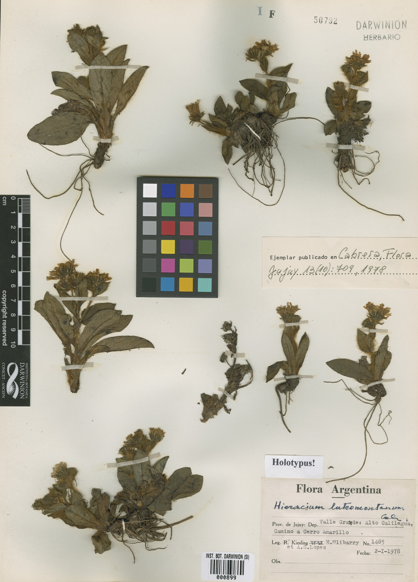 Hierbas perennes, rizomatosas, de 5-10 cm de alto. Tallos densamente flocosos, con setas largas. Hojas ovadas u ovadolanceoladas de 2,5-5 × 1,5-2,2 cm, las superiores gradualmente menores, agudas u obtusas en el ápice, atenuadas en pseudopecíolo, enteras o ligeramente denticuladas en el margen, con setas en haz y envés, con frecuencia dispuestas en el margen de la lámina y sobre las nervaduras. Capítulos pocos, situados sobre 1-3 ramas; pedúnculo e involucro flocosos, con setas intrincadas, castañas. Involucro acampanado, de 7-9 × 9-10 mm; filarios linear-lanceolados, subagudos a agudos, los externos cortos, setosos, los internos más largos, glabrescentes, con cerdas en la parte central. Flores amarillas, con lígula muy desarrollada, la que supera la altura del involucro. Aquenios inmaduros, castaños. Papus amarillento, ca. 4 mm de largo.
