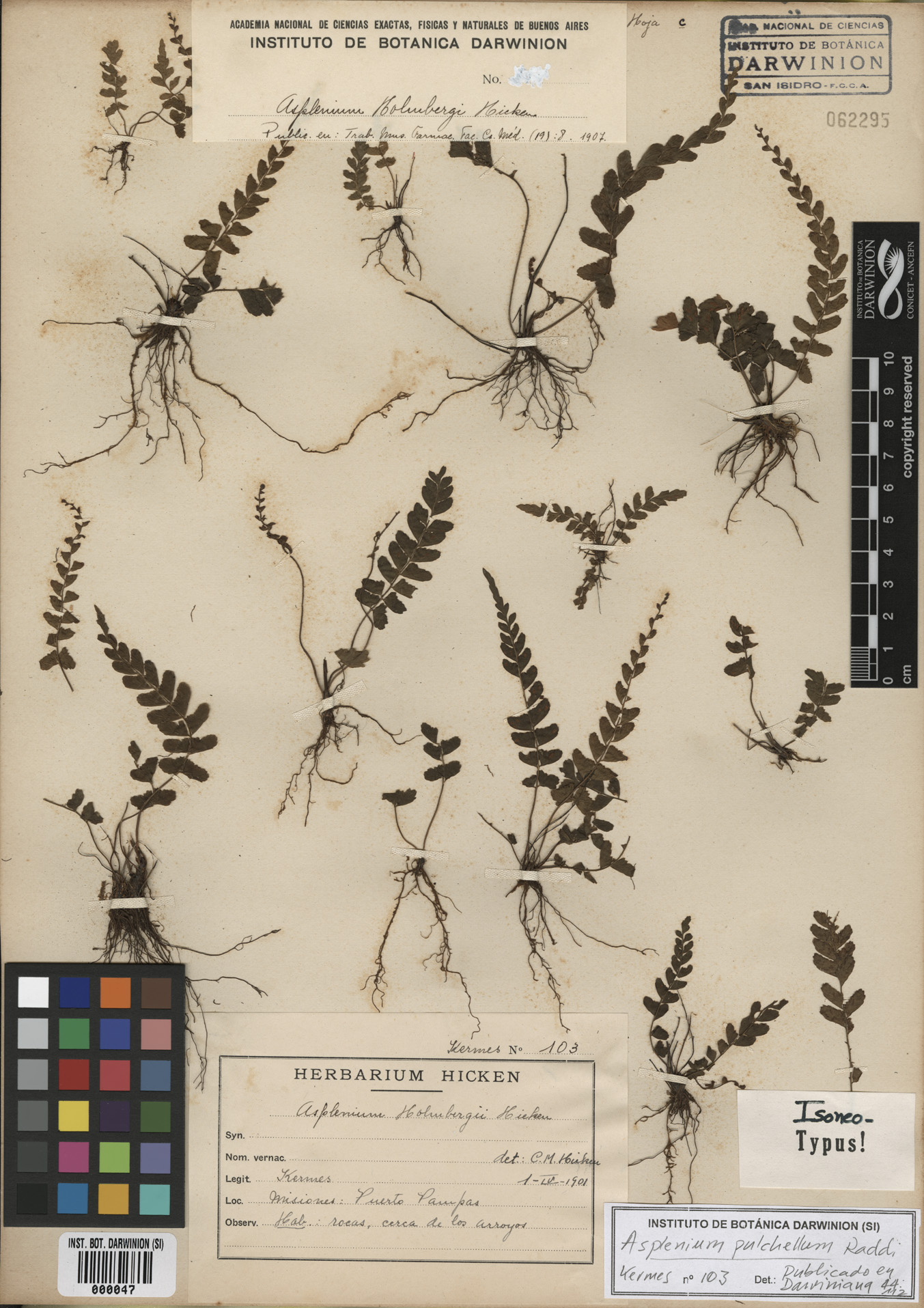 Tipo de Asplenium holmbergii Hicken
