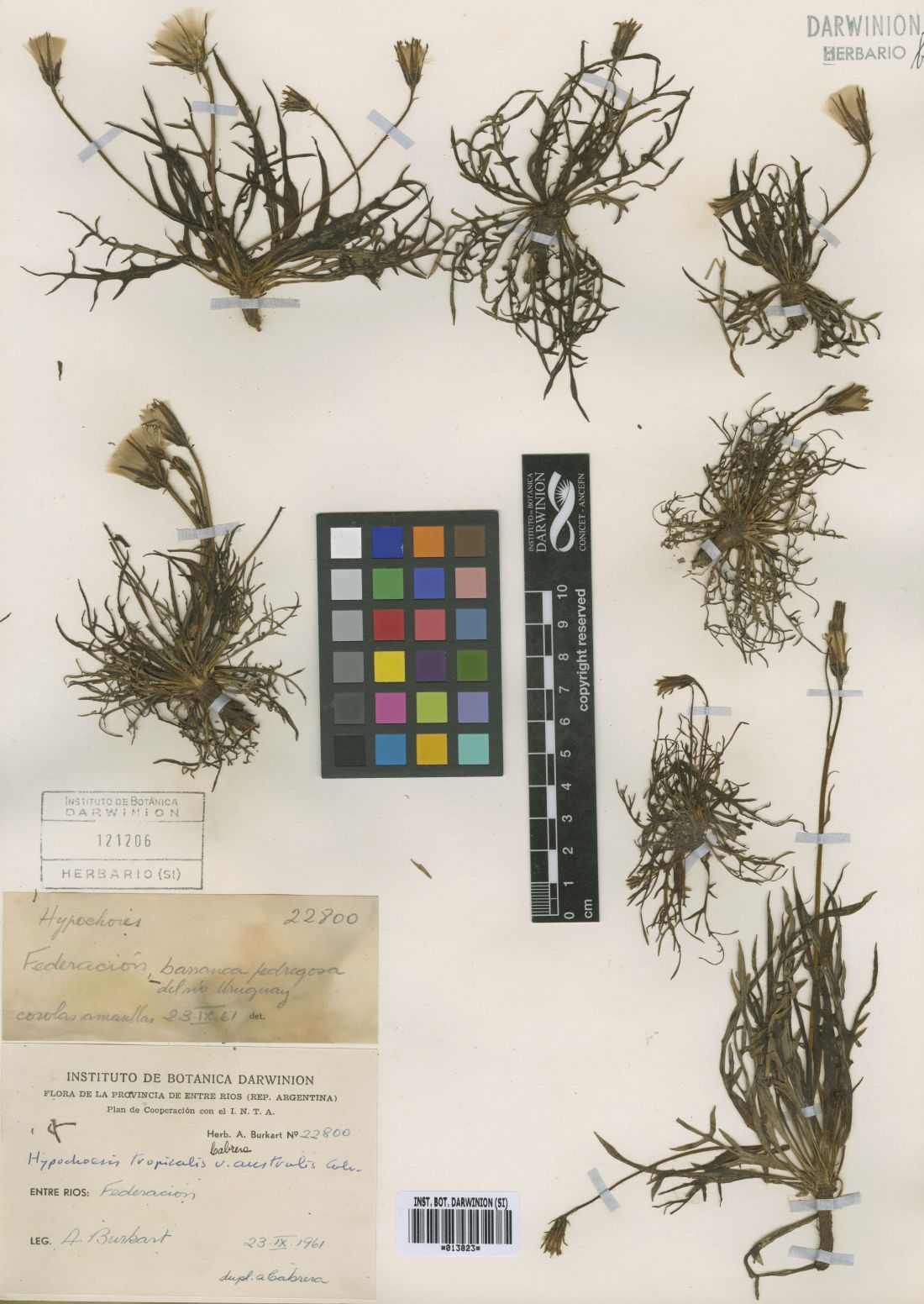 Hierbas perennes, de 8-40 cm de alto, con rizoma profundo; tallos erectos a ascendentes, estriados, simples o ramificados, ligeramente hirsutos. Hojas basales en roseta, linearoblanceoladas de 2,5-14,5 × 0,5-4 cm, pinnatisectas, base atenuada, ápice agudo, margen dentado o lobulado, glabras o híspidas sobre el nervio medio abaxial; hojas caulinares en las bifurcaciones, alternas, linear-lanceoladas, de 1-7 cm de largo, partidas o lobadas, enteras hacia el ápice, con base semiamplexicaule y ápice atenuado, margen sinuado o dentado, menores y enteras hacia el ápice. Capítulos pocos, reunidos en cimas corimbiformes laxas; pedúnculo hirsuto. Involucro cilíndrico, de 10-15 × 4-5 mm; filarios 4-5-seriados, los externos lineares, ápice obtuso, glabros o lanuginosos; páleas del receptáculo de 13-14 mm de largo. Flores poco más largas que el involucro; corolas amarillas, de 10,5-11,2 mm de largo; lígulas más cortas que el tubo de la corola. Aquenios isomorfos, erostrados, de 4,5-8 mm de largo, con pared escamosa. Papus 1- seriado, de 10-11 mm de largo.