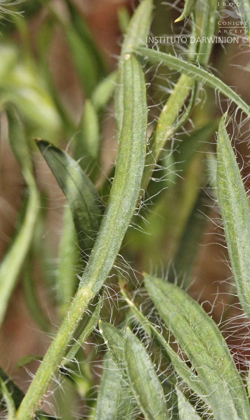 Sufrútices rizomatosos, hasta de 30 cm de alto, con tallos erectos o ascendentes, simples o poco ramosos en la base, hojosos, estrigosos. Hojas obovadas o angostamente obovadas, ca. 20 × ca. 3 mm, base largamente atenuada en un pseudopecíolo, ápice agudo, margen entero, estrigosas, las superiores esparcidas, linear-elípticas, base atenuada, de menor tamaño que las inferiores. Capítulos solitarios, pedunculados, de 6-7 × ca. 10 mm. Involucro hemisférico, con filarios subiguales dispuestos en 3 ó 4 series, linear-ovados, de 5-6 × 0,8-0,9 mm, agudos, hirsutos. Flores marginales dispuestas en 1 ó 2 series, con corola amarilla de 7,5-10 mm de largo, limbo de 5-7 × ca. 1 mm; flores del centro con corola de 4,2-4,5 mm de largo. Aquenios obovoides, de 1,8-2 × ca. 0,8 mm, comprimidos, con 2-4 nervios, subglabros. Papus formado por 2 series, con una serie externa de pajitas cortas y otra interna de cerdas escabrosas ca. 3,5 mm de largo.