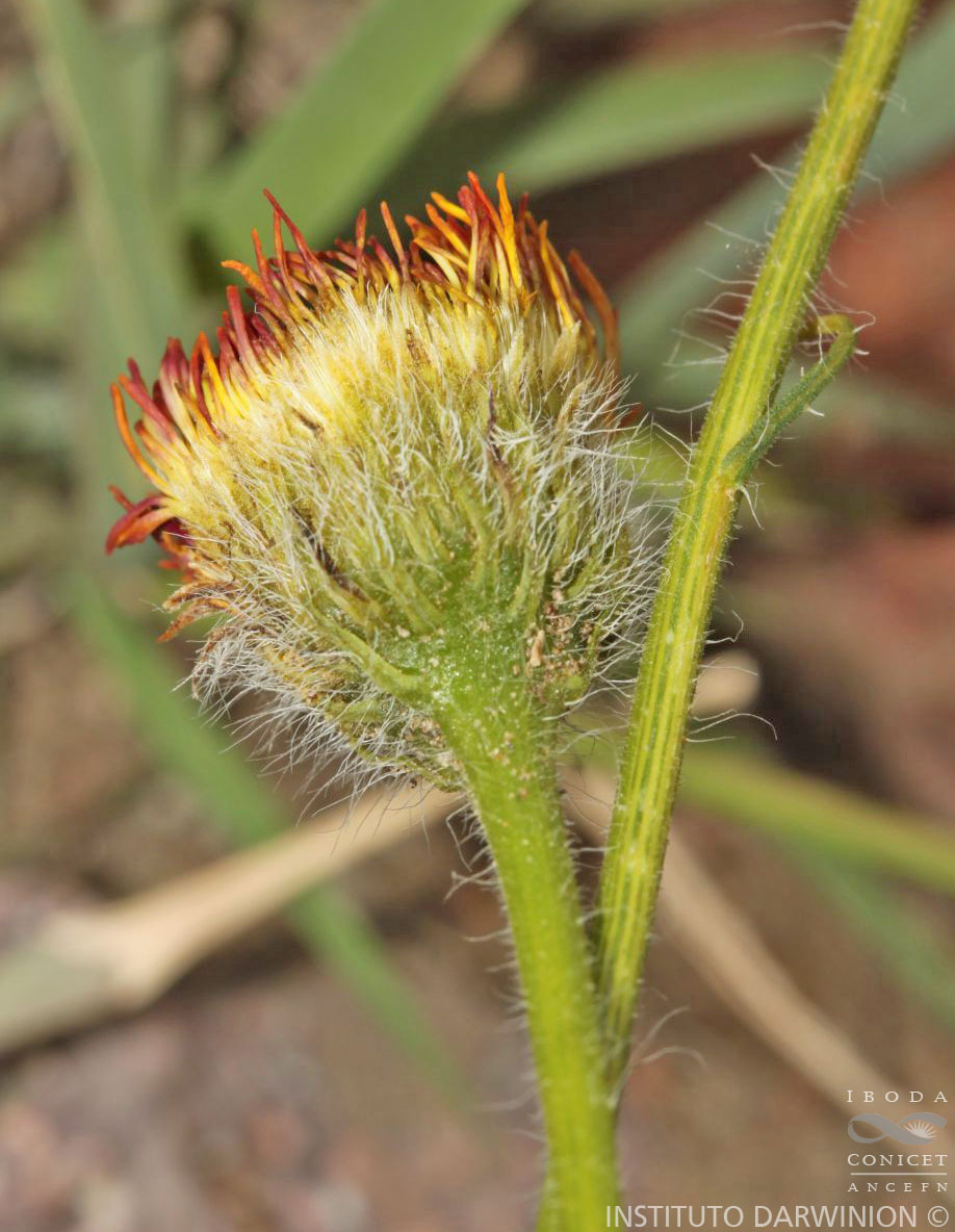 Sufrútices rizomatosos, hasta de 30 cm de alto, con tallos erectos o ascendentes, simples o poco ramosos en la base, hojosos, estrigosos. Hojas obovadas o angostamente obovadas, ca. 20 × ca. 3 mm, base largamente atenuada en un pseudopecíolo, ápice agudo, margen entero, estrigosas, las superiores esparcidas, linear-elípticas, base atenuada, de menor tamaño que las inferiores. Capítulos solitarios, pedunculados, de 6-7 × ca. 10 mm. Involucro hemisférico, con filarios subiguales dispuestos en 3 ó 4 series, linear-ovados, de 5-6 × 0,8-0,9 mm, agudos, hirsutos. Flores marginales dispuestas en 1 ó 2 series, con corola amarilla de 7,5-10 mm de largo, limbo de 5-7 × ca. 1 mm; flores del centro con corola de 4,2-4,5 mm de largo. Aquenios obovoides, de 1,8-2 × ca. 0,8 mm, comprimidos, con 2-4 nervios, subglabros. Papus formado por 2 series, con una serie externa de pajitas cortas y otra interna de cerdas escabrosas ca. 3,5 mm de largo.