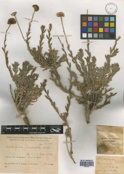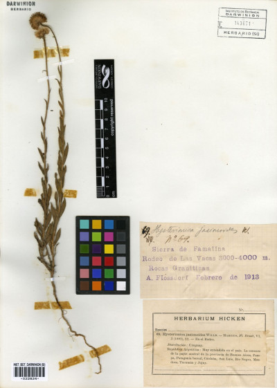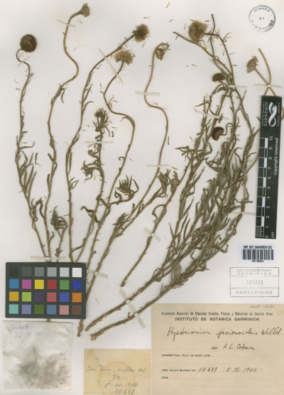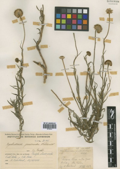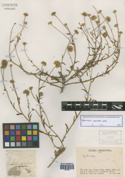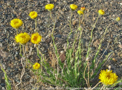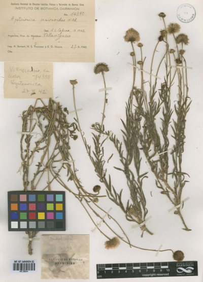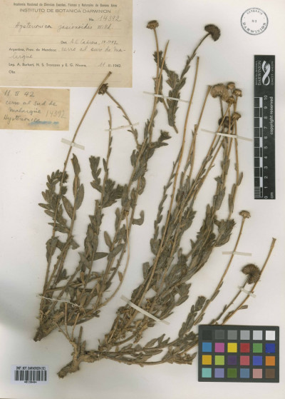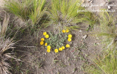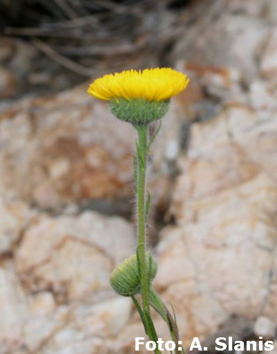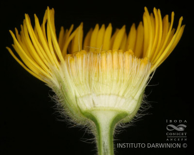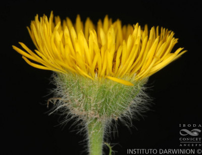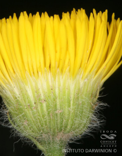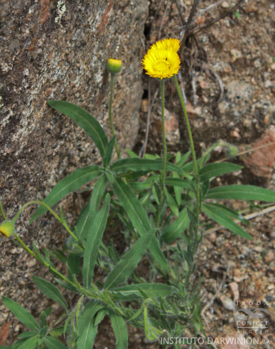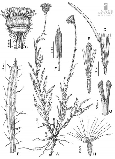 Hierbas perennes, rizomatosas, hasta de 40 cm de alto, con tallos ascendentes o erectos, ramosos en la base, hojosos, densamente hirsutos con pelos cortos densos y pelos largos, más esparcidos. Hojas elípticas a linear-elípticas, de 15-60 × 2-8 mm, base atenuada, ápice agudo, margen entero, hirsutas en ambas caras, con pelos cortos dispuestos uniformemente y otros largos en el margen y sobre el nervio medio. Capítulos solitarios, pedunculados, de 6,5-13 × ca. 12 mm. Involucro hemisférico, con filarios algo desiguales dispuestos en 3 series, linear-ovados, de 5-8 × 0,5-0,9 mm, agudos, hirsutos, con pelos cortos y largos. Flores marginales dispuestas en 2 series, con corola amarilla, de 8-13 mm de largo, limbo de 6-12 × ca. 0,9 mm; flores del centro con corola de 4-5 mm de largo. Aquenios obovoides, comprimidos, ca. 2 × 1 mm, con 2 nervios, laxamente seríceos. Papus formado por 2 series, una externa de cerdas cortas y una interna de cerdas escabrosas, de 4-4,5 mm de largo.