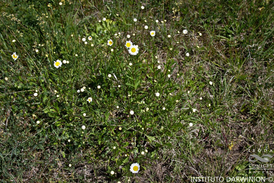 Hierbas perennes, con tallos simples o poco ramificados, de 10-30(-100) cm de alto. Hojas inferiores espatuladas, de 12-50 × 8-30 mm, largamente atenuadas en pseudopecíolo más largo que la lámina, inciso-crenadas; hojas caulinares gradualmente menores, de 3-8 cm × 2-15 mm, sésiles, espatuladas a lineares, enteras o dentadas. Capítulos solitarios sobre pedúnculos largos. Involucro de 6-7 × 12-20 mm; filarios 3-4-seriados, los externos oblongo-triangulares, los internos oblongos, obtusos, todos con margen escarioso (nervadura y márgenes oscuros). Flores dimorfas: las del margen pistiladas, con lígula blanca, de 10-30 mm de largo, tubo corto, aplanado, con 2 alas laterales angostas; flores del centro perfectas, corolas tubulosas, de 3 mm de largo, 5-lobadas, constrictas en la zona media, hacia la base con pliegues longitudinales y un poco replegadas sobre el ovario, amarillas. Aquenios cilíndricos, de 1,5-3 mm de largo, oscuros, con ca. 10 costillas blancas, los del margen llevan un reborde o aurícula membranácea.