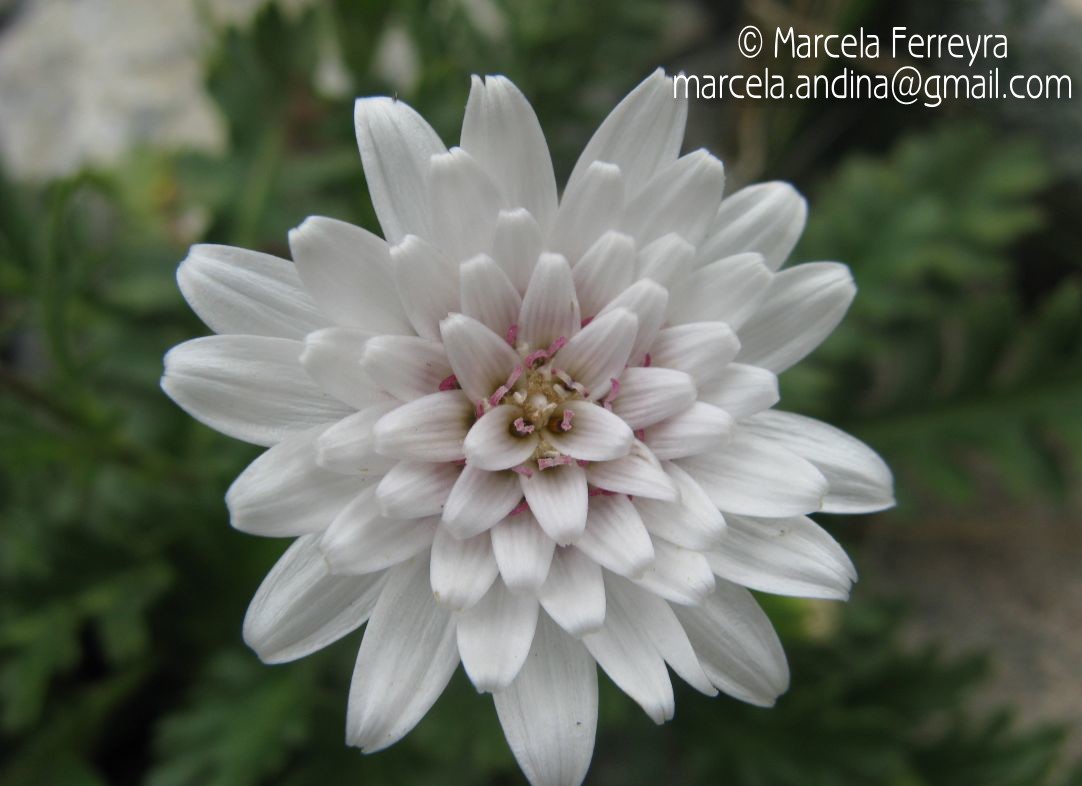 Hierbas perennes, hasta de 25 cm de alto, acaules; escapos áfilos, glabrescentes. Hojas dispuestas en roseta, espatuladas, de 4-5 × 1,5-2 cm, atenuadas en la base en largo pecíolo envainador, glabras, pinnatilobuladas a profundamente pinnatisectas, con 9-13 pares de segmentos oblanceolados, obtusos, provistos de 1 ó 2 lóbulos. Capítulos solitarios. Involucro hemisférico, de 10-15 × 15- 20 mm; filarios 1-2- seriados, linear-lanceolados, de aproximadamente igual longitud,agudos, densamente lanosos. Flores ca. 50, corola rosada, las del margen con tubo de 5-7 mm de largo, labio exterior de 4-6 × 1-3 mm. Aquenios cilíndricos, papiloso-pubérulos. Papus blanco, cerdas plumosas desde la base, de 6-7 mm de largo.