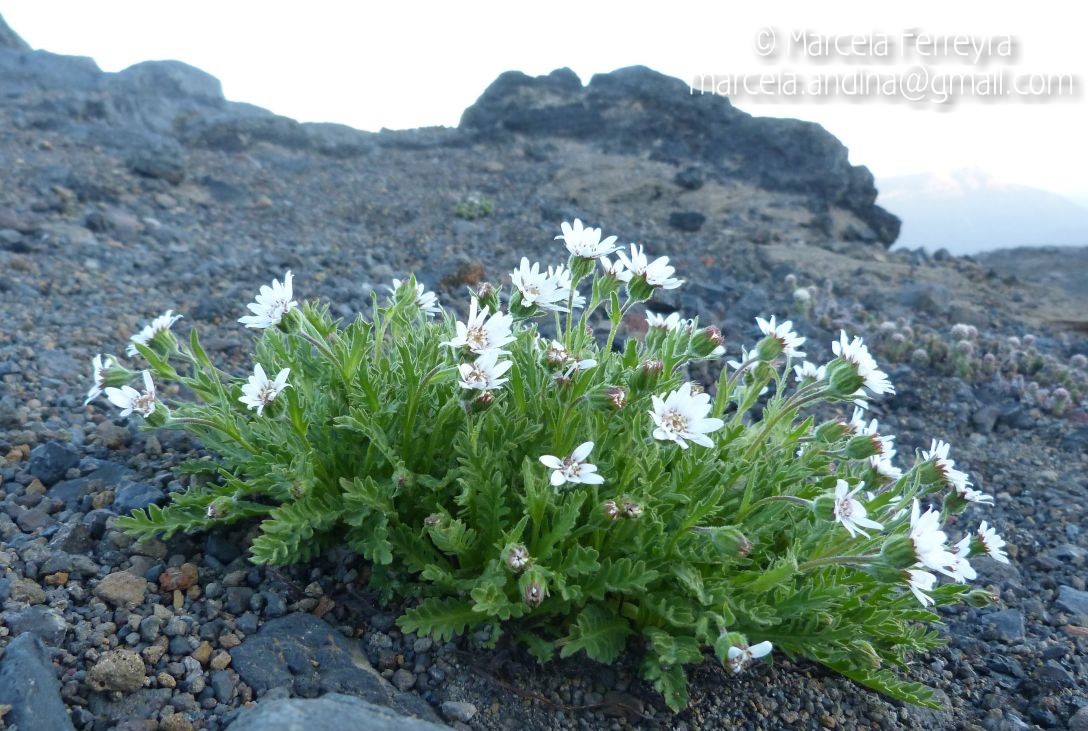 Hierbas perennes, hasta de 25 cm de alto, acaules; escapos áfilos, glabrescentes. Hojas dispuestas en roseta, espatuladas, de 4-5 × 1,5-2 cm, atenuadas en la base en largo pecíolo envainador, glabras, pinnatilobuladas a profundamente pinnatisectas, con 9-13 pares de segmentos oblanceolados, obtusos, provistos de 1 ó 2 lóbulos. Capítulos solitarios. Involucro hemisférico, de 10-15 × 15- 20 mm; filarios 1-2- seriados, linear-lanceolados, de aproximadamente igual longitud,agudos, densamente lanosos. Flores ca. 50, corola rosada, las del margen con tubo de 5-7 mm de largo, labio exterior de 4-6 × 1-3 mm. Aquenios cilíndricos, papiloso-pubérulos. Papus blanco, cerdas plumosas desde la base, de 6-7 mm de largo.