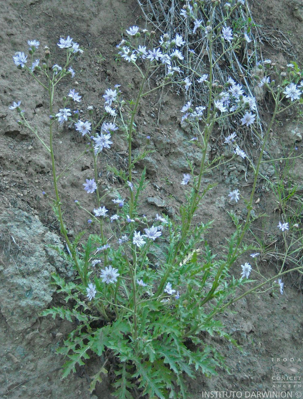 Hierbas perennes, de 30-60 cm de alto, caulescentes; tallos erectos, sencillos, densamente hojosos en la base y con pocas hojas en el resto, blanco-tomentosas y glandulosas. Hojas inferiores dispuestas en roseta, oblanceoladas, de 8-40 × 1,5-6 cm, atenuadas en corto pecíolo envainador en la base, muy agudas en el ápice, lobuladas a pinnatífidas en el margen, con segmentos agudos, enteros o dentados, lanuginosas y glanduloso-pubescentes en la haz, densamente albo-tomentosas en el envés; hojas superiores lanceoladas, semiabrazadoras en la base, profundamente pinnatisectas, con segmentos lineares. Capítulos pocos, dispuestos en cimas paniculiformes o corimbiformes, laxas o contraídas. Involucro acampanado, de 11-14 × 15-17 mm; filarios 2-seriados, lanceolados, agudos, glanduloso-pubescentes y lanuginosos. Flores ca. 30, corola azul o violácea, las del margen con tubo de 6- 8 mm de largo, labio exterior de 5-8 × 2,5-3 mm. Aquenios obovoides, densamente papiloso-pubescentes. Papus blanco o amarillo-pálido, cerdas plumosas desde la base, de 6-7 mm de largo.