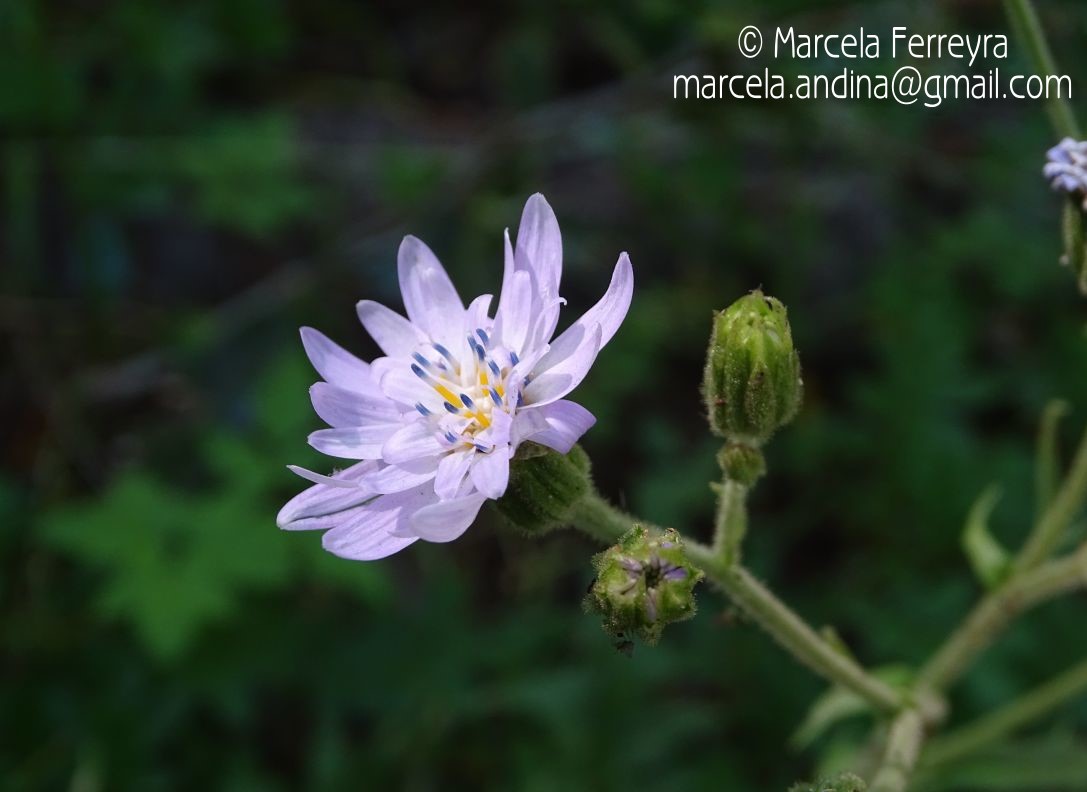 Hierbas perennes, de 30-60 cm de alto, caulescentes; tallos erectos, sencillos, densamente hojosos en la base y con pocas hojas en el resto, blanco-tomentosas y glandulosas. Hojas inferiores dispuestas en roseta, oblanceoladas, de 8-40 × 1,5-6 cm, atenuadas en corto pecíolo envainador en la base, muy agudas en el ápice, lobuladas a pinnatífidas en el margen, con segmentos agudos, enteros o dentados, lanuginosas y glanduloso-pubescentes en la haz, densamente albo-tomentosas en el envés; hojas superiores lanceoladas, semiabrazadoras en la base, profundamente pinnatisectas, con segmentos lineares. Capítulos pocos, dispuestos en cimas paniculiformes o corimbiformes, laxas o contraídas. Involucro acampanado, de 11-14 × 15-17 mm; filarios 2-seriados, lanceolados, agudos, glanduloso-pubescentes y lanuginosos. Flores ca. 30, corola azul o violácea, las del margen con tubo de 6- 8 mm de largo, labio exterior de 5-8 × 2,5-3 mm. Aquenios obovoides, densamente papiloso-pubescentes. Papus blanco o amarillo-pálido, cerdas plumosas desde la base, de 6-7 mm de largo.