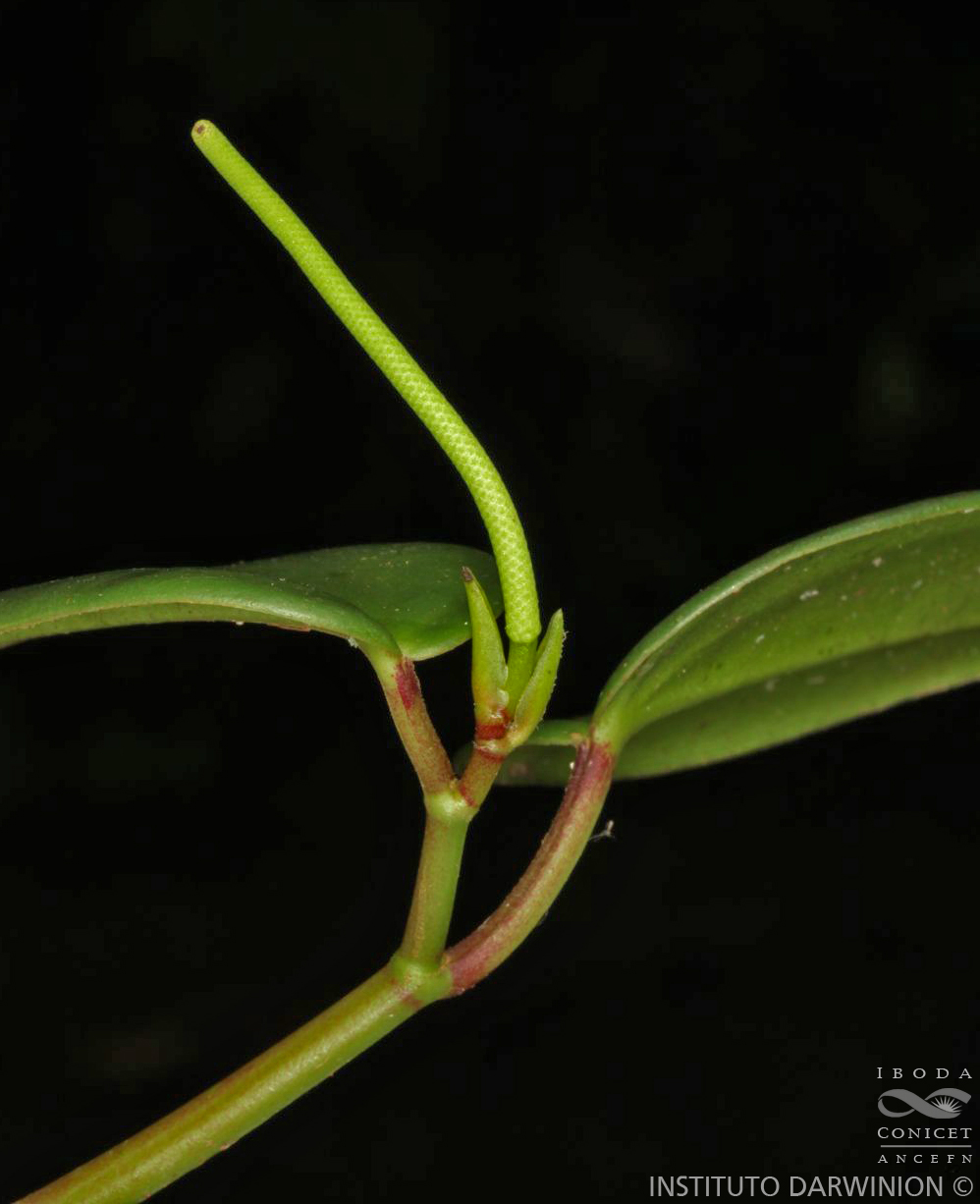 Hierbas terrestres o rupícolas, rastreras; tallos ramificados, con entrenudos de 2-5(-7) cm de largo, glabros a levemente pulverulentos en los nudos. Hojas alternas, con pecíolos de 1-4 cm de largo, canaliculados, ciliados; láminas ovado-lanceoladas, a veces asimétricas, de 2,5-6 × 2-3,5 cm, base levemente cordada a redondeada, ápice acuminado, cartáceas, con el nervio medio marcado, ciliadas hacia el ápice. Inflorescencias axilares, compuestas por 2 espigas de 7-12 cm de largo, a veces una de ellas poco desarrollada; pedúnculos de 0,8-1,2 cm de largo; brácteas florales orbiculares. Frutos cilíndricos, de 2-3 mm de largo, sésiles, de superficie papilosa-glandular, de inserción superficial en el raquis; estigma subapical, cubierto parcialmente por una protuberancia estilar dando el aspecto de un capuchón.
