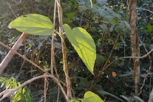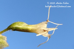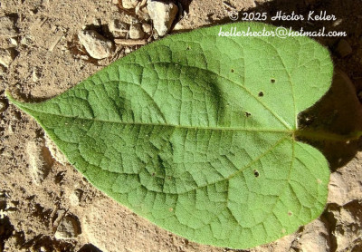 Enredaderas perennes, de tallos multiestriados con pubescencia muy abundante. Hojas opuestas, pecioladas, con pecíolos de 1,5-5 cm de largo y láminas cordiformes, de 4-14 × 2- 9 cm, de margen liso o cortamente denticulado y ápice caudado, hirsutas, con pelos de color castaño en la haz, y con pelos flexibles, más largos y muy abundantes en el envés; domacios «en bolsillo», basales, centrales y laterales, pero no en todas las intersecciones de las nervaduras; estípulas ausentes. Capítulos muy numerosos, pedunculados, dispuestos en inflorescencias paniculiformes terminales y axilares. Involucro de (4,5-)6-7 mm de alto; filarios oblongos u oblongo-lanceolados, de 1-1,6 mm de ancho, de ápice agudo, glabros o poco pilosos; bractéola ovada, de (3,5-)5,5-6 × (1,6-)2,4-3 mm, acuminada, glabra o poco pilosa. Flores con corola blanca, tubulosa, de 4-5 mm de largo, tubo de 1,8-2,2 mm y limbo acampanado de 2,3-2,8 mm de largo, dividido en lóbulos de 1-1,2 mm de largo. Aquenios pilosos de 3 mm de largo. Papus blanco, de 4,5-5 mm de largo, compuesto por 25-45 aristas.