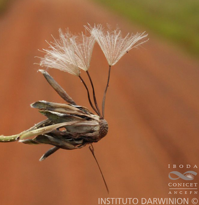 Sufrútices volubles; tallos sin alas, flexuosos, laxamente tomentosos o glabros. Hojas alternas, pinnaticompuestas, raquis linear, de 50-90 mm de largo, tomentoso, terminado en un zarcillo 3-fido, con 4-6 pares de folíolos, subopuestos o alternos, elípticolanceolados, de 15-40 × 7-15 mm, cuneiformes en la base y obtusos o agudos en el ápice, enteros en los márgenes, lanuginosos o glabros en la cara superior y densamente ocráceos o albo-lanosos en la inferior, los 2 inferiores estipuliformes. Capítulos heterógamos, radiados, solitarios, largamente pedunculados; pedúnculos de 4-8 cm de largo, glabros o apenas tomentosos. Involucro acampanado, de 20-30 × 10-15 mm; filarios dispuestos en 5-7 series, los externos anchamente ovado-lanceolados, de 10-18 × 6-7 mm, atenuados en una punta larga, lanceolada y notablemente recurvada, los intermedios oblongo-ovados, agudos y recurvados en el ápice, los internos oblongos, de 30- 35 × 7-10 mm, obtusos en el ápice, no recurvados, todos ellos glabros en el dorso y albo-tomentosos en el ápice y en el margen. Flores dimorfas, las del margen 12-15, pistiladas, con corolas de color rojo, subliguladas, tubo de 30-40 mm de largo, lígulas angostamente elípticas, de 12-20 × 3-4 mm, 3-dentadas en el ápice, tomentosas en la cara inferior, labio interior reducido a 2 segmentos lineares y cortos; flores del centro perfectas, numerosas, con corolas bilabiadas, tubo ca. 40 mm de largo, labios ca. 10 mm de largo, el exterior 3-dentado y el interno 2-fido. Aquenios cilindroides, atenuados en el ápice, de 20-30 mm de largo, glabros. Papus blanquecino, de 25-30 mm de largo.