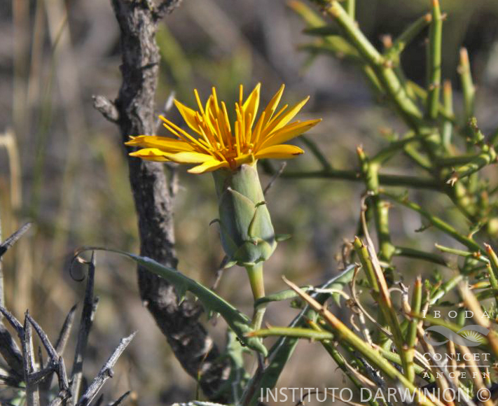 Sufrútices volubles, de 0,5-1,5 m de largo, glabros; tallos flexuosos, parcialmente alados. Hojas alternas, sésiles, oblongolanceoladas, de 2,5-8 × 1-2 mm, ensanchadas y decurrentes en la base en 2 alas anchas que se contraen abruptamente en alas muy estrechas sobre el tallo, runcinadas y revolutas en el margen, con 3-5 lóbulos triangulares a cada lado, glabras en la cara superior y densamente albo-tomentosas en la inferior. Capítulos heterógamos, radiados, solitarios, largamente pedunculados; pedúnculos de 1-6 cm de largo. Involucro acampanado, de 2-2,5 × 1 cm; filarios dispuestos en 5 series, los externos anchamente ovados, de 3-7 × 6 mm, terminados en un apéndice linear y recurvado, los intermedios ovados, obtusos y terminados en un apéndice linear corto, los internos oblongo-lanceolados, de 2-2,5 cm × 8 mm, subagudos-mucronados en el ápice, todos ellos glabros. Flores dimorfas, las del margen 10-12, pistiladas, con corolas amarillas, subliguladas, tubo ca. 2 cm de largo, lígulas anchamente elípticas, de 2,5-3 cm × 6 mm, 3-dentadas en el ápice, labio interior reducido a 2 segmentos lineares y cortos; flores del centro perfectas, numerosas, con corolas amarillas, bilabiadas, tubo ca. 1,6 cm de largo, labios ca. 8 mm de largo, el exterior 3- dentado y el interno 2-fido. Aquenios cilindroides, atenuados en el ápice, ca. 1,5 cm de largo, glabros. Papus blanquecino, ca. 1,5 cm de largo.